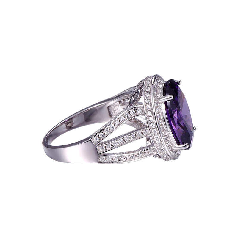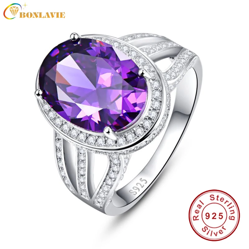BONLAVIE 10,2 карата Аметист фиолетовые кольца настоящее чистое 925 пробы серебро античный женский дизайн овальные ювелирные изделия, обручальное кольцо
