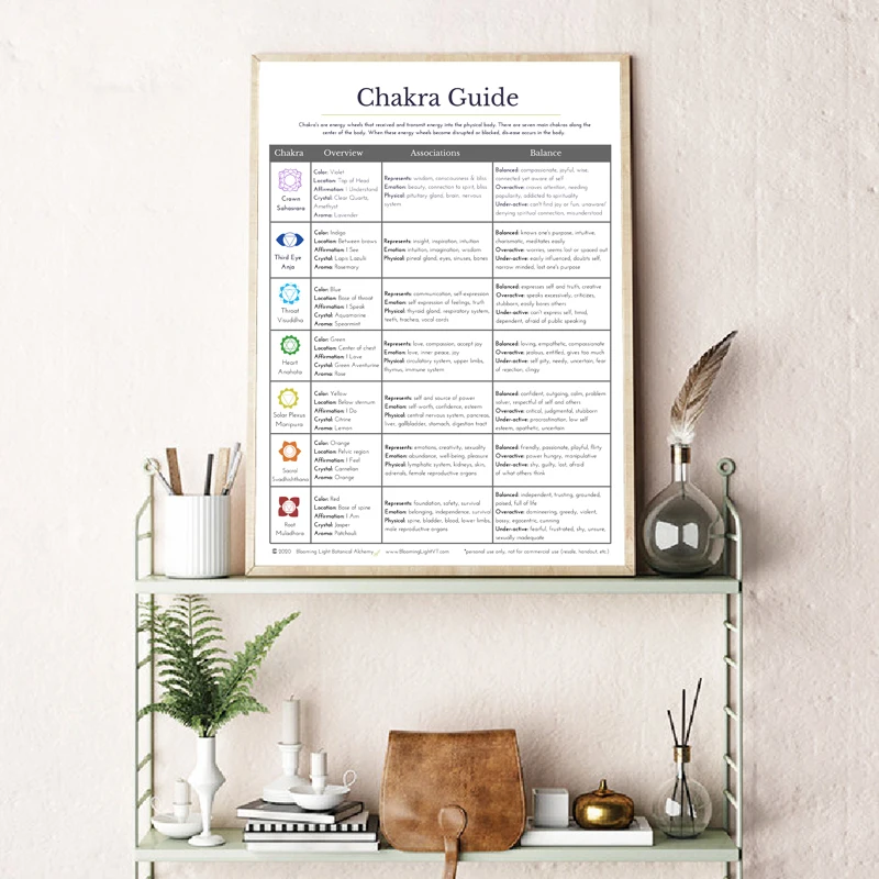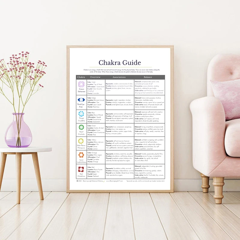 Чакра, справочная диаграмма, печать, 7 чакр, гид, плакат, спортивный зал, Йога, настенное искусство, энергетическое исцеление, холст, картина на стену, Йога, декор комнаты