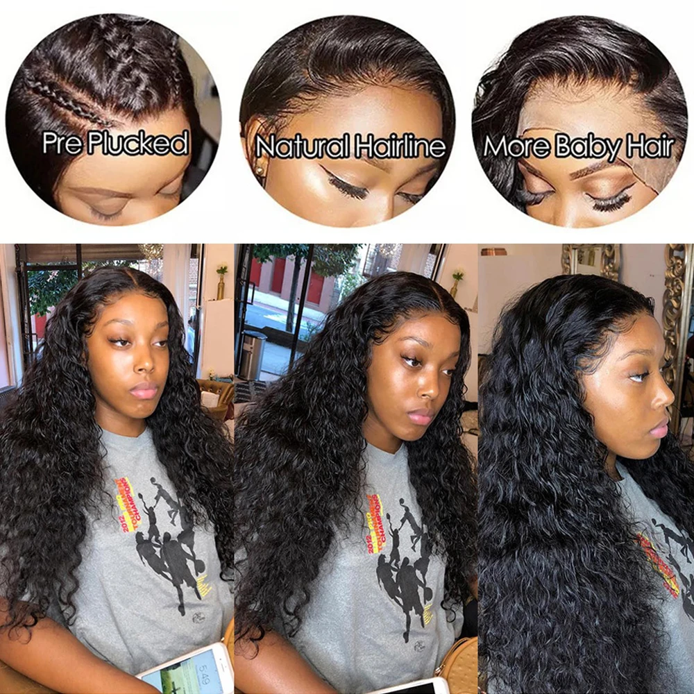 30, 40 дюймов, свободная глубокая волна, фронтальный парик, кудрявы...