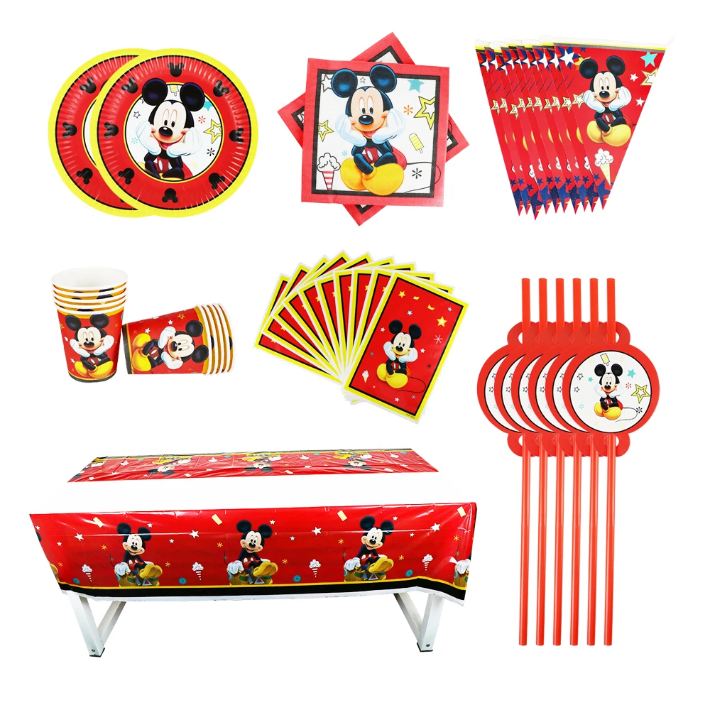 40/80/81/100 шт. Дисней красный Микки Маус День рождения Дети Baby Shower праздничные украшения наборы баннер соломенный Подарочный пакет чашки тарелки принадлежности