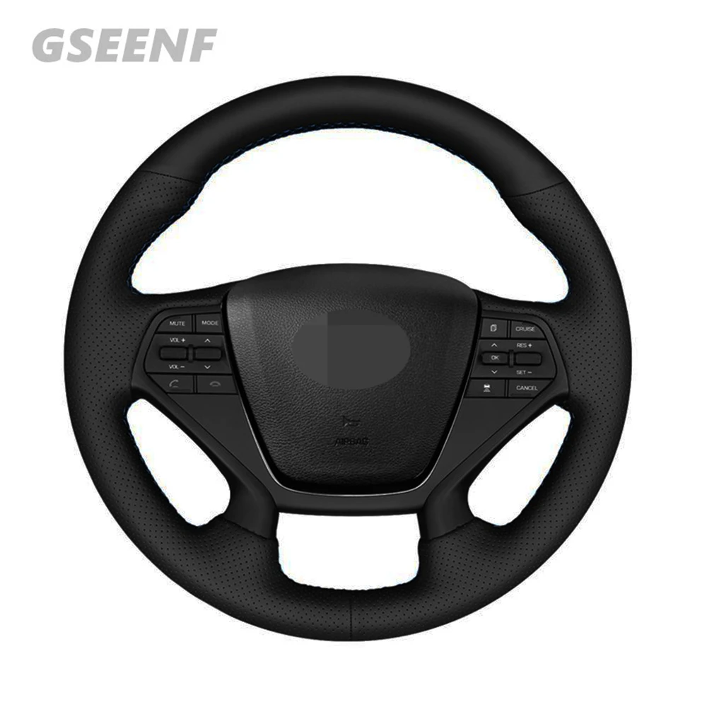 Искусственная кожа для Hyundai Sonata 9, 2015, чехол рулевого колеса автомобиля, 2016 (4-спицевая), черная, сшитая вручную