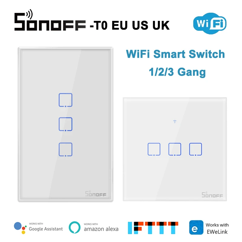 Умный переключатель SONOFF T0, Wi-Fi, переключатель SONOFF, EU, UK, US, 1, 2, 3, переключатель Wi-Fi для умного дома, работает с Alexa, Google Home EWeLink