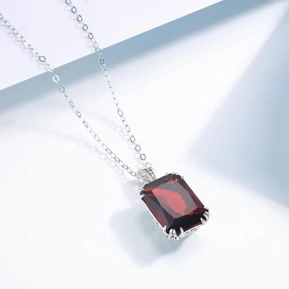 100% Настоящее серебро 925 пробы, прекрасное ювелирное ожерелье, квадратный гранат, классические кулоны для женщин, аксессуары, серебро 925 пробы, подарки