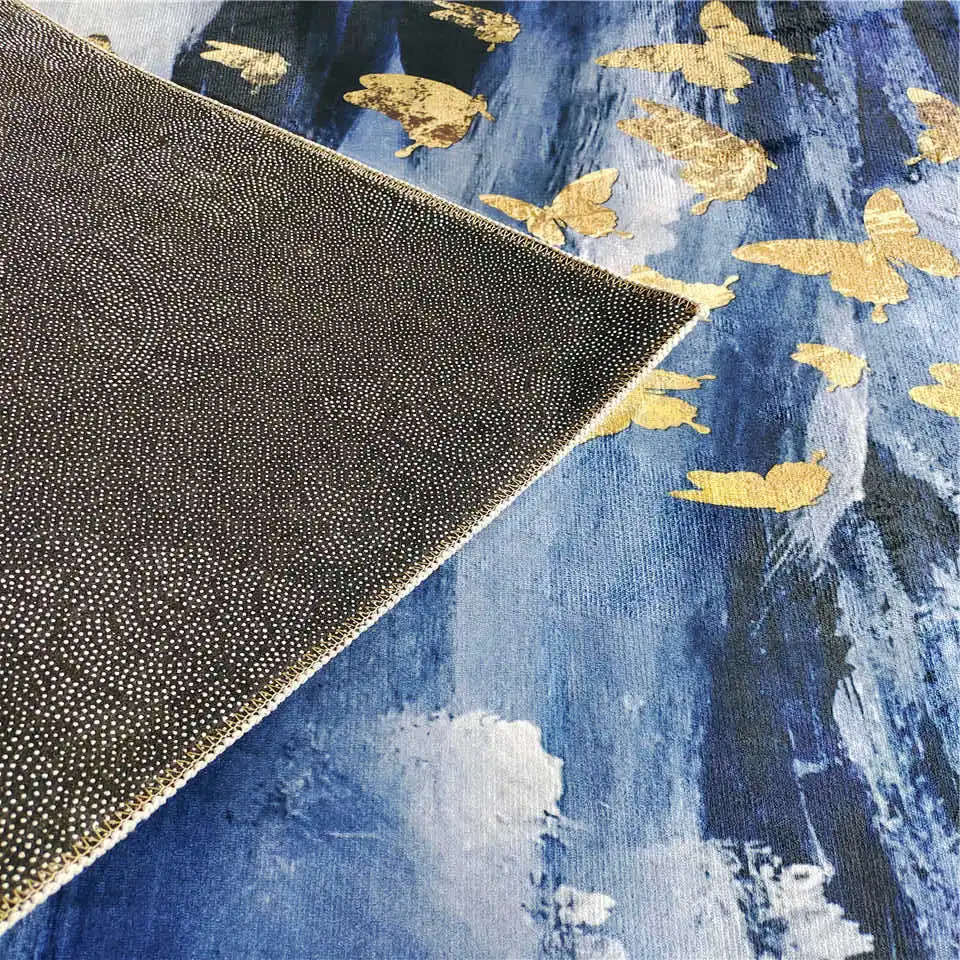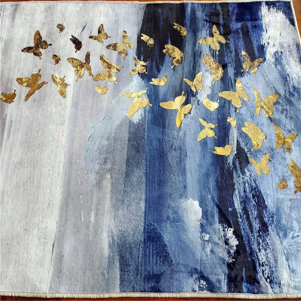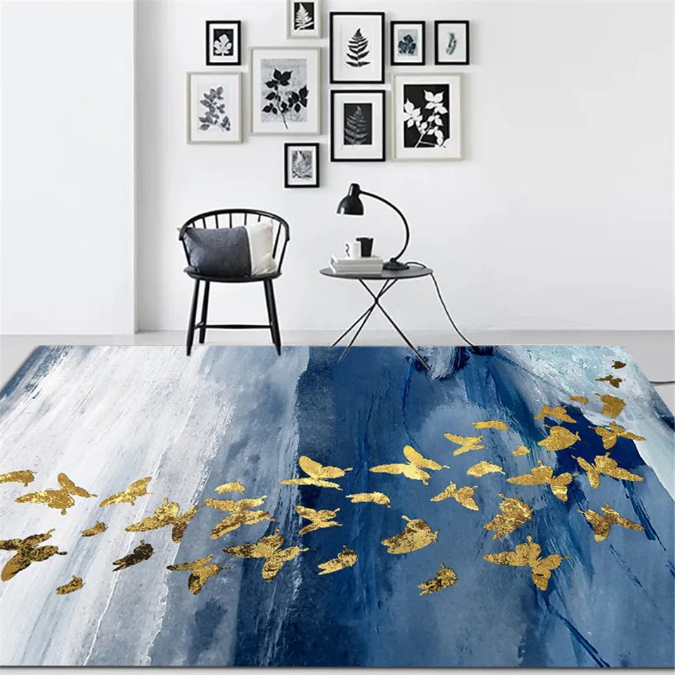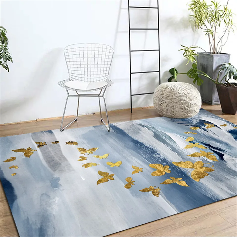 Флуоресцентный Название: скандинавский Синий Серый ковер с золотыми рисунками, ковер с бабочками рядом с журнальным столиком, напольный коврик на балконе, коврик для спальни Другое название: коврик для пола, прикроватный коврик, коврик для журнального столика, коврик для стула, коврик для унитаза, кухонный коврик Размер: 40*60 см, 50*80 см, 60*90 см, 80*120 см, 80*160 см, 100*160 см пользовательский размер Толщина: 6-7 мм Посылка: сложенная упаковка с водонепроницаемой сумкой