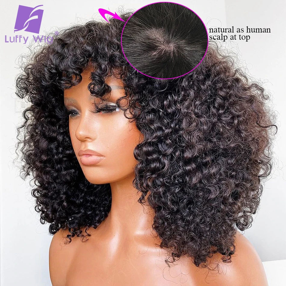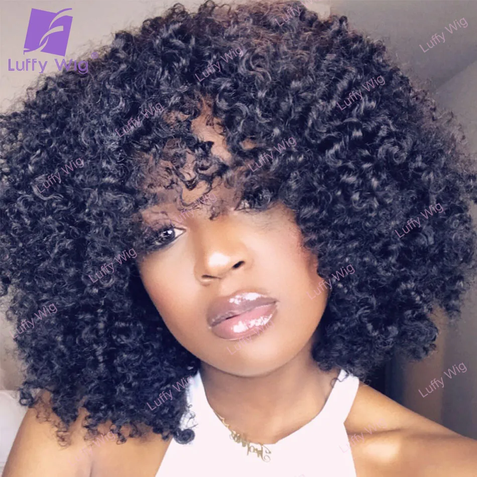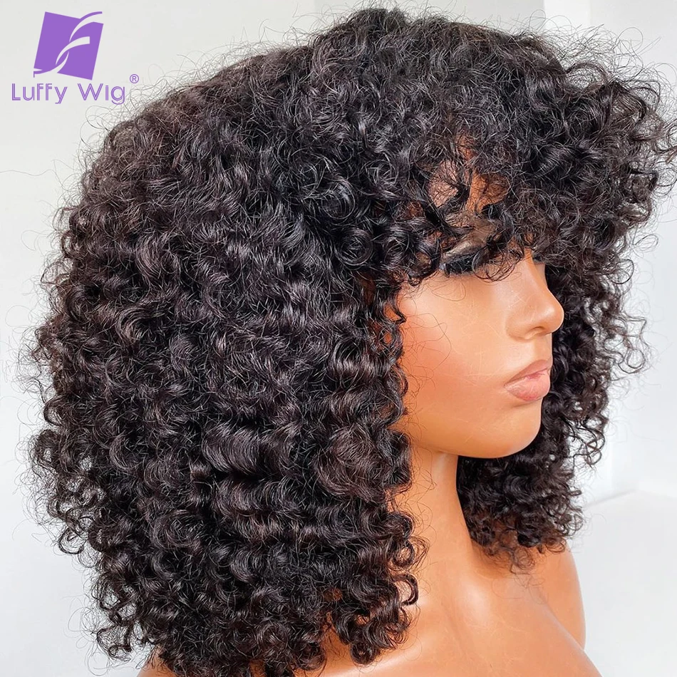 200 плотные парики из человеческих волос с челкой, короткие бразильские волосы Remy, машинное изготовление, кудрявый парик без клея для черных женщин Luffy
