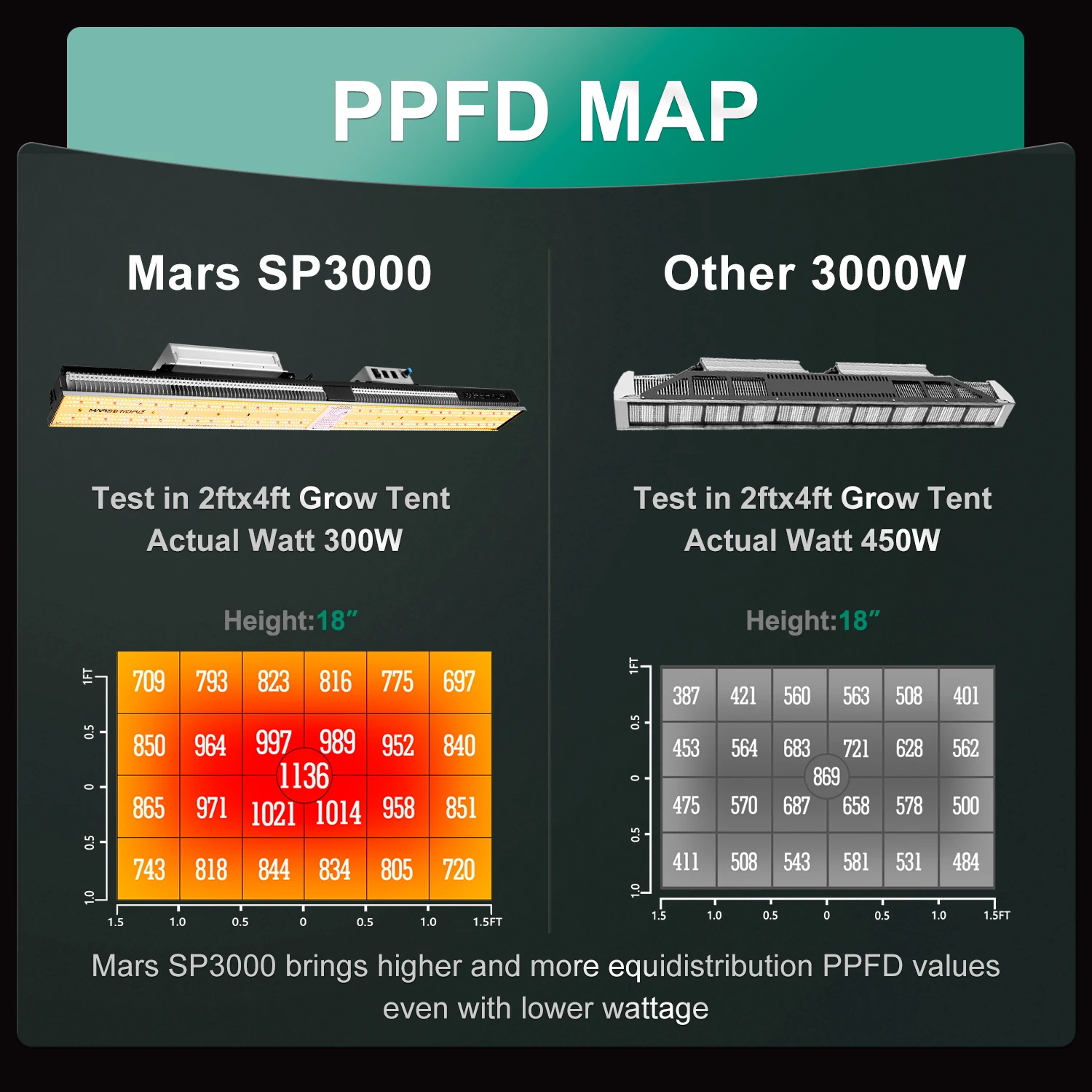 Светодиодная лампа для выращивания растений Mars Hydro SP 3000, полноспектральная, водонепроницаемая, с нулевым уровнем шума