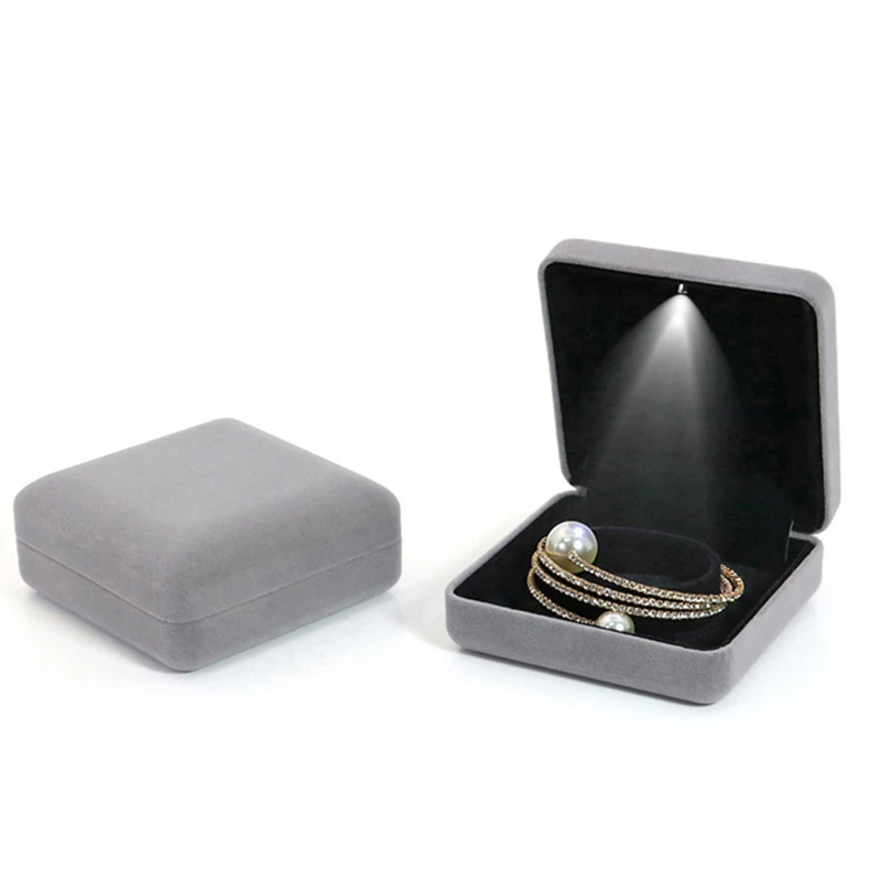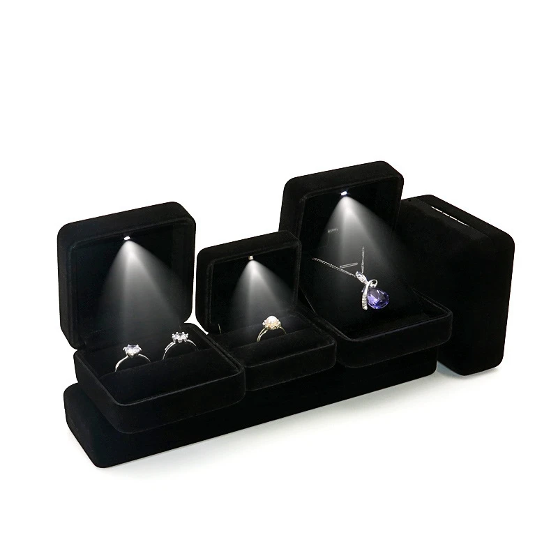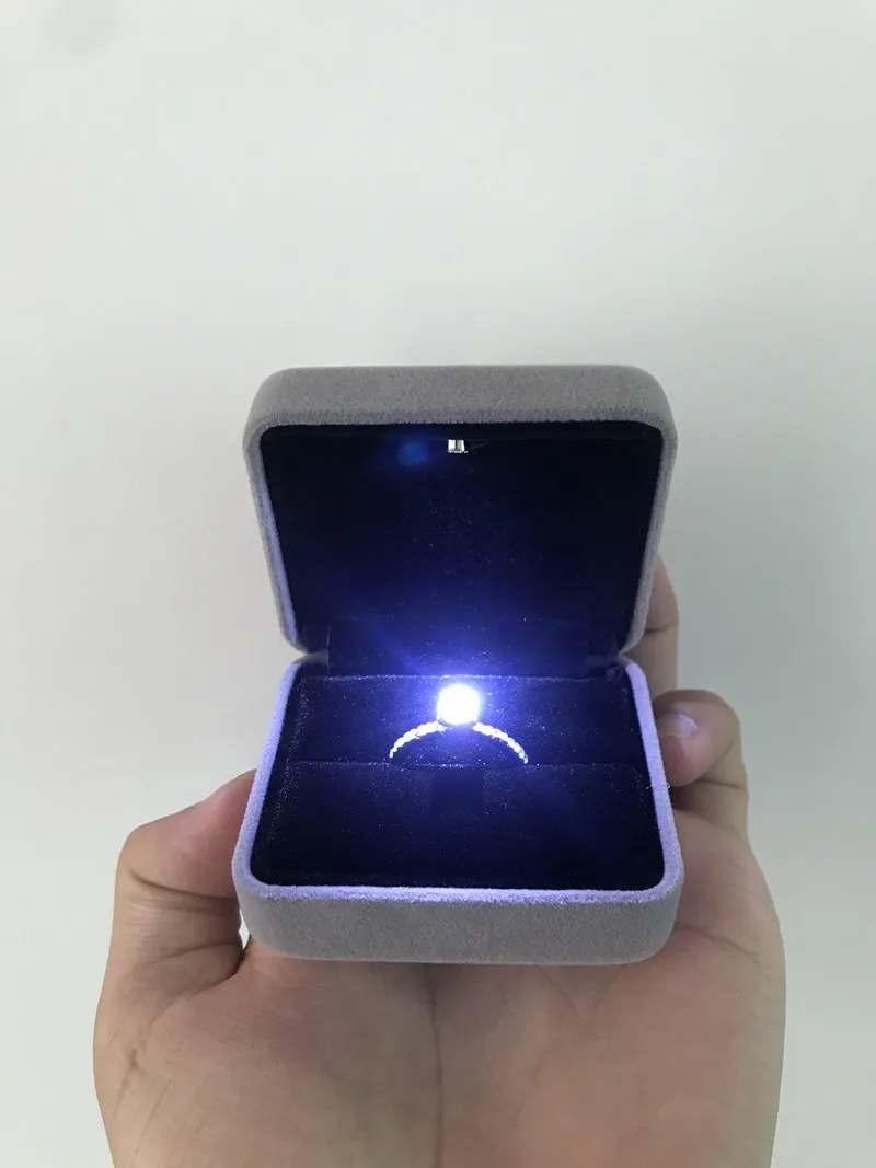 Шкатулка для ювелирных изделий со светодиодной подсветкой, фланелевый бокс с подвесками для колец, свадебных колец, серег, в комплекте с подсветкой