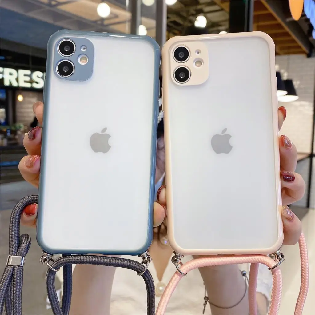 Прозрачный чехол для телефона с ремешком и цепочкой для iPhone 11 11 Pro Max XR XS Max X 7 8 Plus SE 2020, прозрачный чехол с ожерельем и ремешком