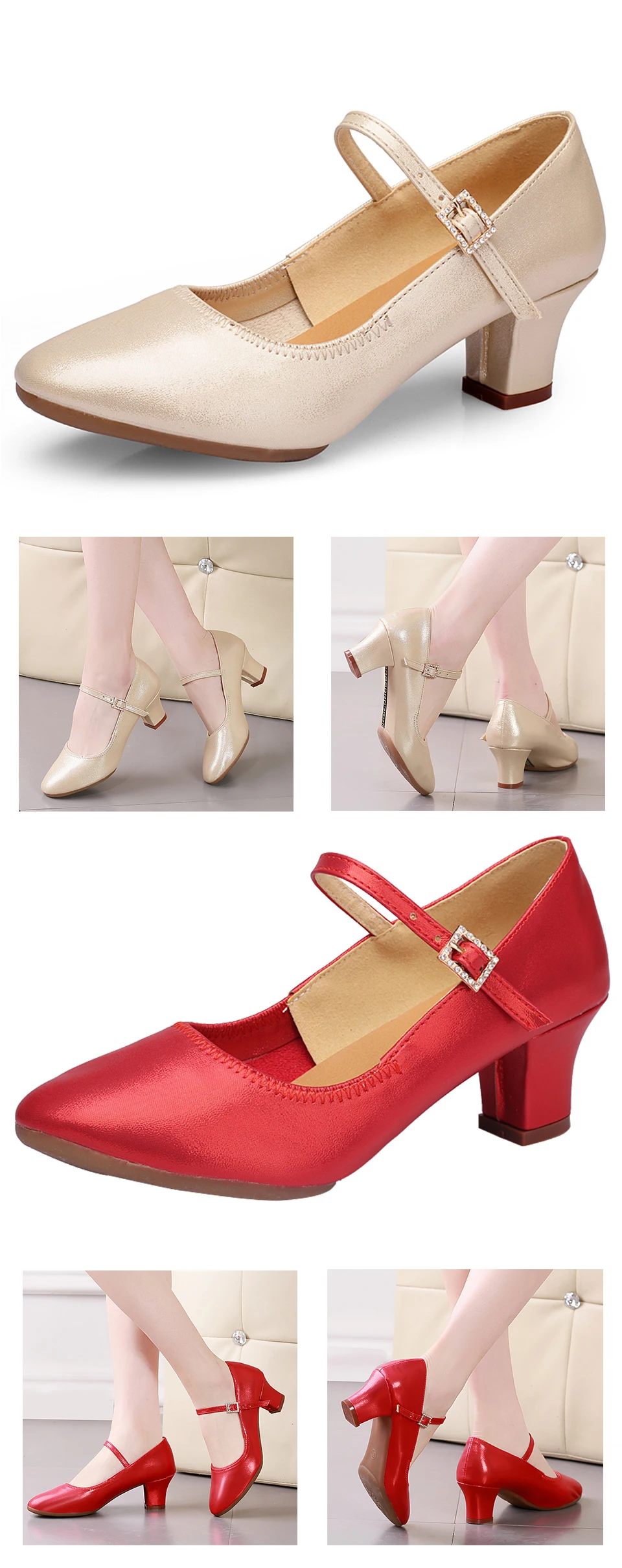 Туфли женские с закрытым носком, танцевальные туфли для девушек и женщин, обувь для танго, сандалии для соцсетевых танцев, красные, серебристые, золотистые, Каблук 5 см