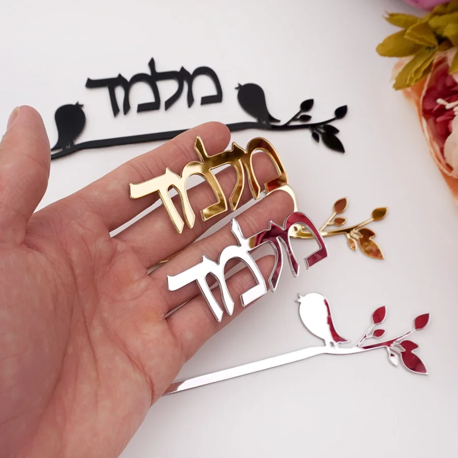 Пользовательский дверной знак на иврит, вывеска с именем семьи, дизайн птиц, дверная тарелка, акриловые зеркальные настенные наклейки, индикация, домашний декор