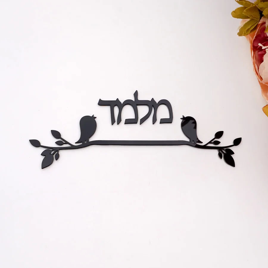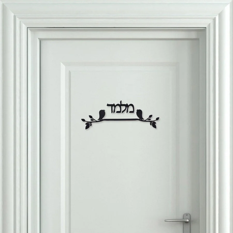 Пользовательские двери знак на иврите имя семьи вывески Птицы дизайн дверная плита акриловое зеркало настенные наклейки индикация домашний декор