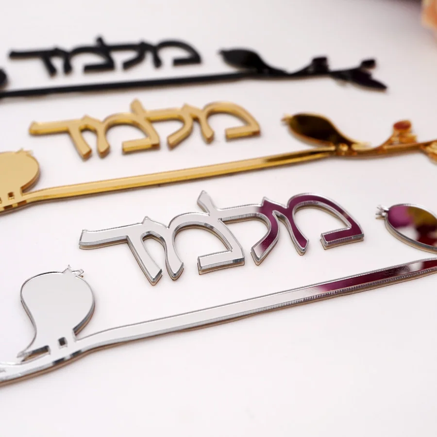 Пользовательский знак двери иврит, акриловая зеркальная настенная н...