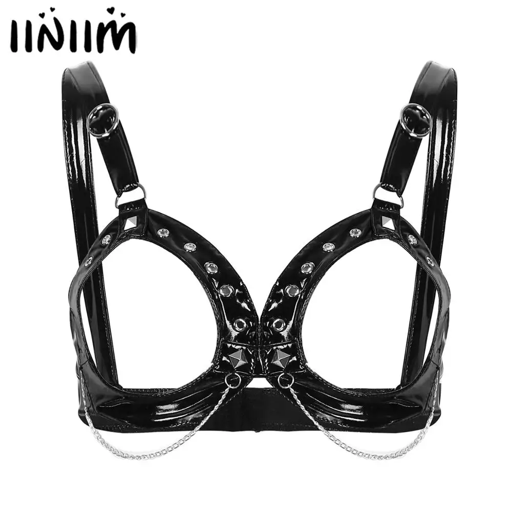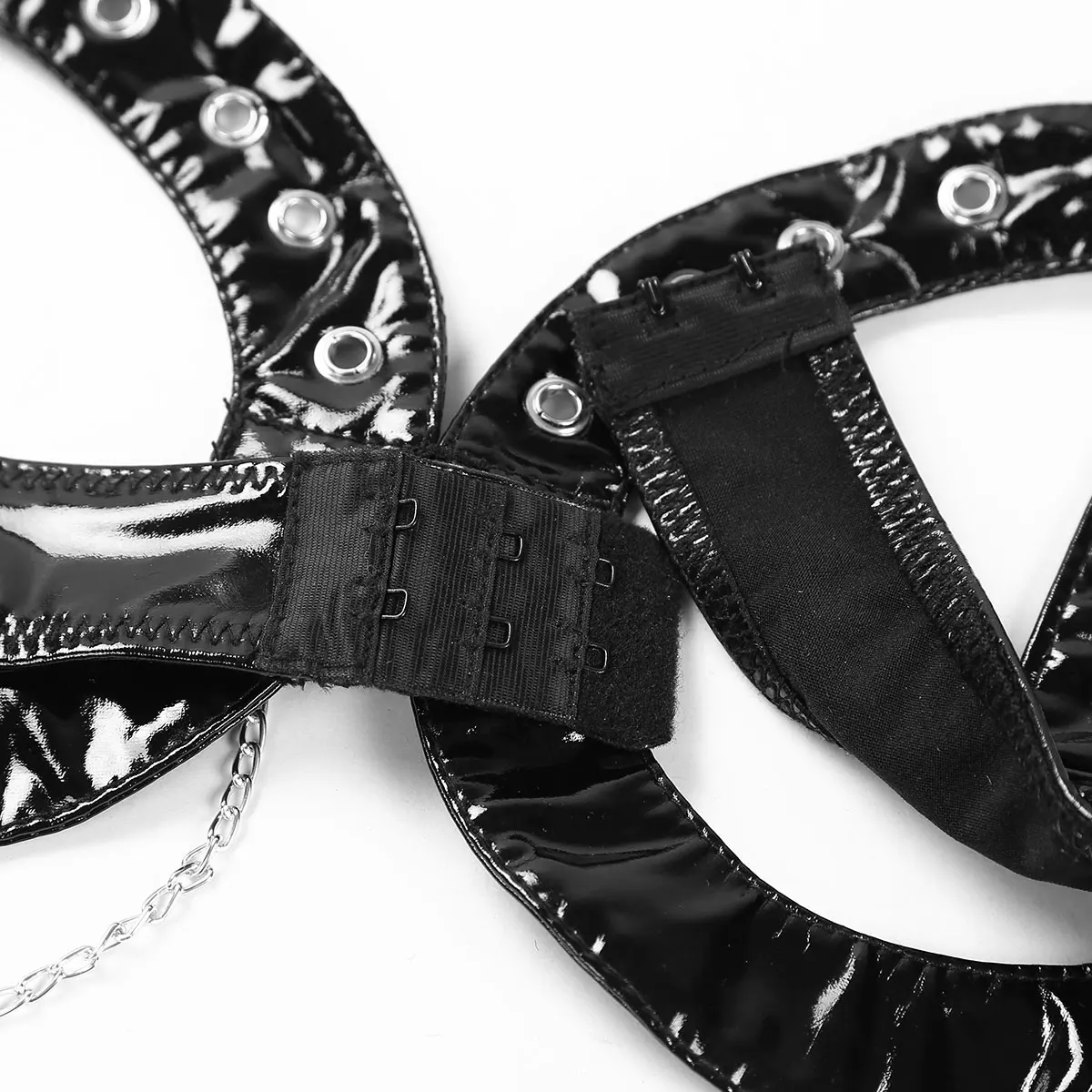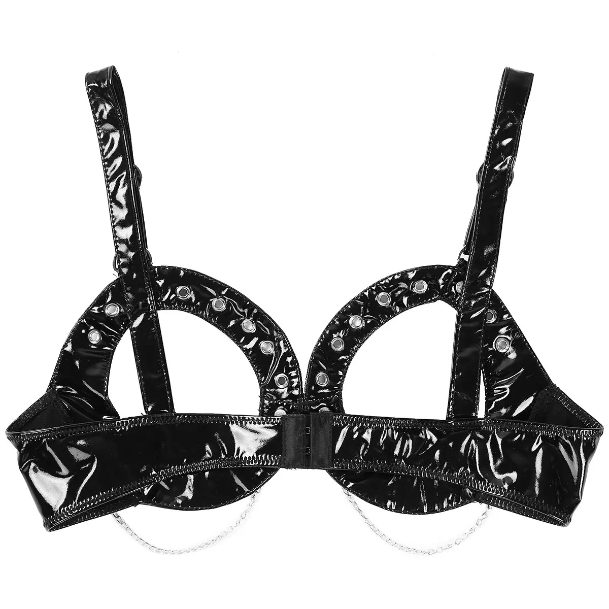 Женский экзотический женский бюстгальтер, топы, латексные костюмы, фетиш, кожаное нижнее белье, женское нижнее белье с металлическими цепочками, бюстгальтер без косточек, Топ
