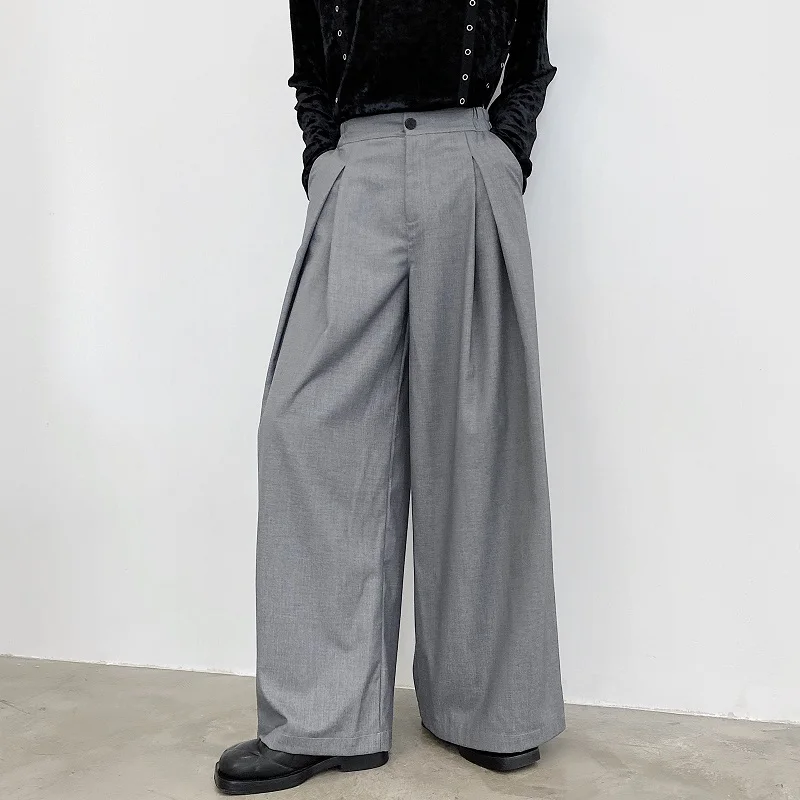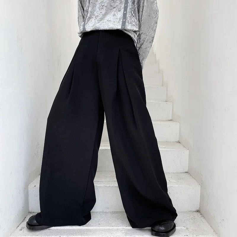 Брюки мужские с завышенной талией, повседневные брюки с широкими штанинами, винтажные модные штаны в японском и корейском стиле, уличная одежда, свободные длинные брюки