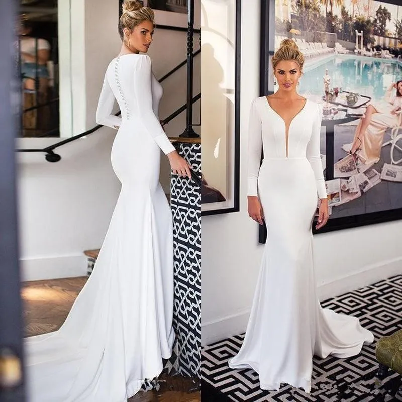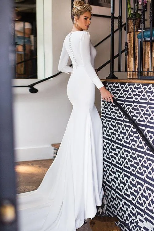 Креп силуэт русалка скромная свадебные платья с длинными рукавами 2021 v-образный вырез с полной спиной богемное садовое простое искусственное
