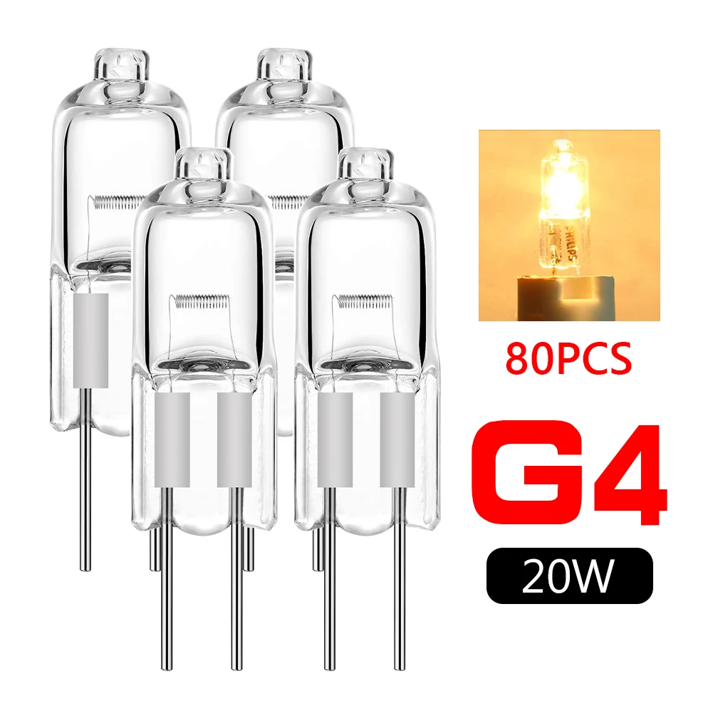 80 шт галогенная G4 12V 20W лампа Тип JC G4 галогенные Светильник лампы G4 база crystal Clear галогенная вставлены бусины с украшением в виде кристаллов лампа