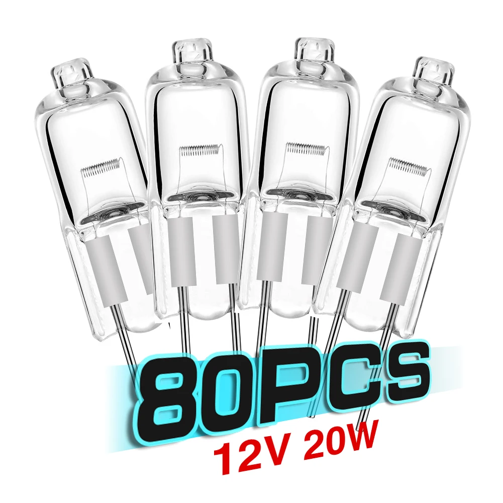 80 шт., галогенные лампы G4 12 В 20 Вт, тип лампы JC G4, галогенсветильник почки G4, база, прозрачные галогенные вставленные бусины, кристальная лампа