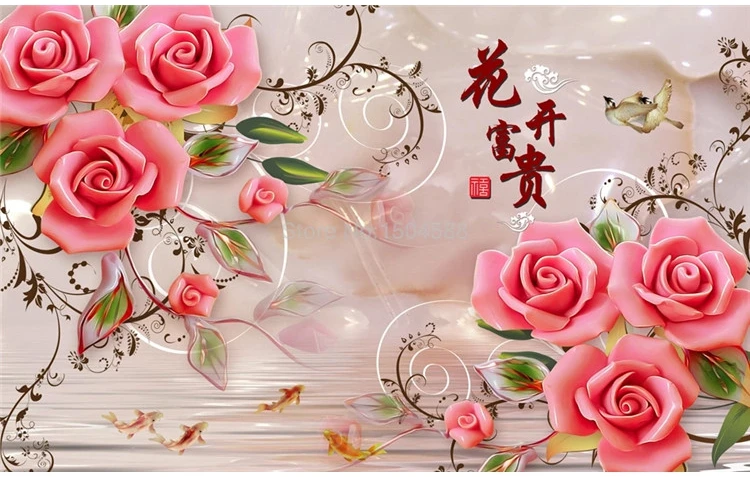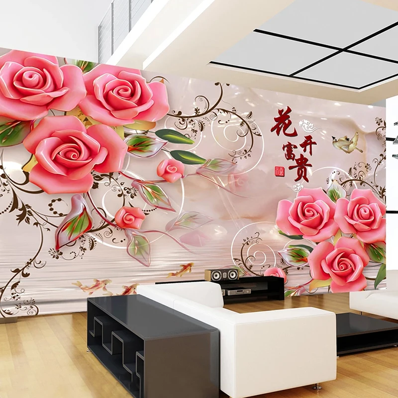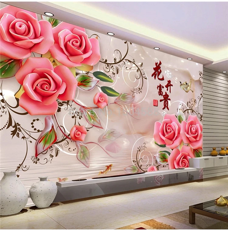Custom 3D Wallpaper Classic Rose Flowers Jade Carving Photo Wall Mural Living Room TV Sofa Home Decor Background Wall Painting