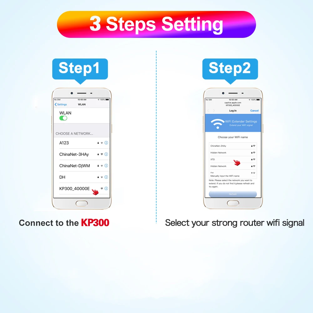 Шаг 1: Подключитесь к KP300 Шаг 2: Выберите сильный сигнал Wi-Fi роутера