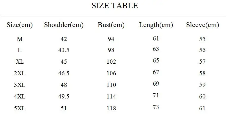SizeAsian size M L XL 2XL 3XL 4XL 5XL