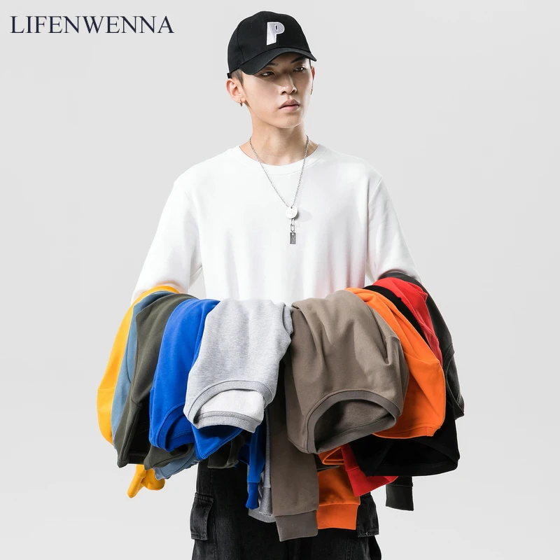 Худи LIFENWENNA 12 цветов, Осенние новые корейские толстовки и свитшоты, модные однотонные мужские и женские топы с круглым вырезом, 5XL