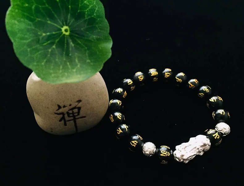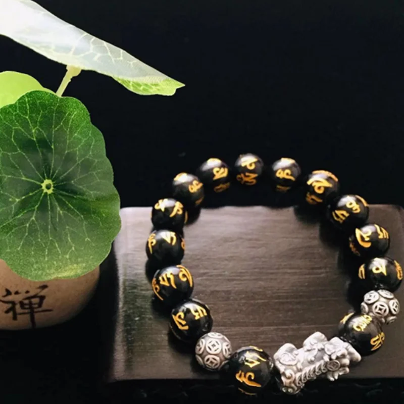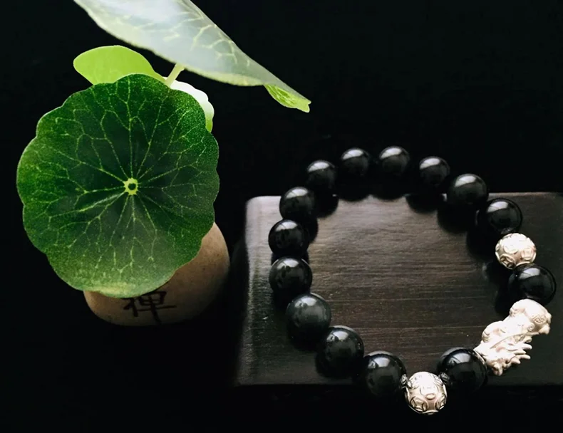 Подарок для мужчин и женщин S999 Pixiu фэн-шуй, обсидиановый браслет ручной работы, амулет на удачу, ювелирные изделия