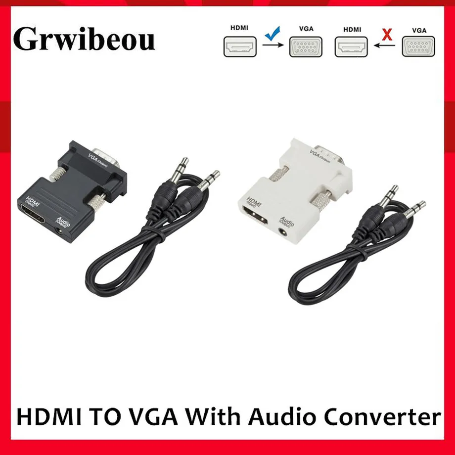 Видеоадаптер HDMI (разъем)VGA (штекер), С аудиоразъемом 3,5 мм, цифроаналоговое преобразование, HD 1080p, для ПК, ноутбуков, планшетов
