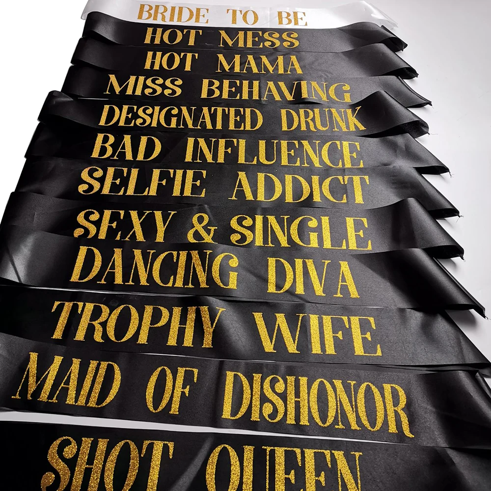 Лента из атласной ленты, для свадьбы, вечеринки, девичника, 12 шт.