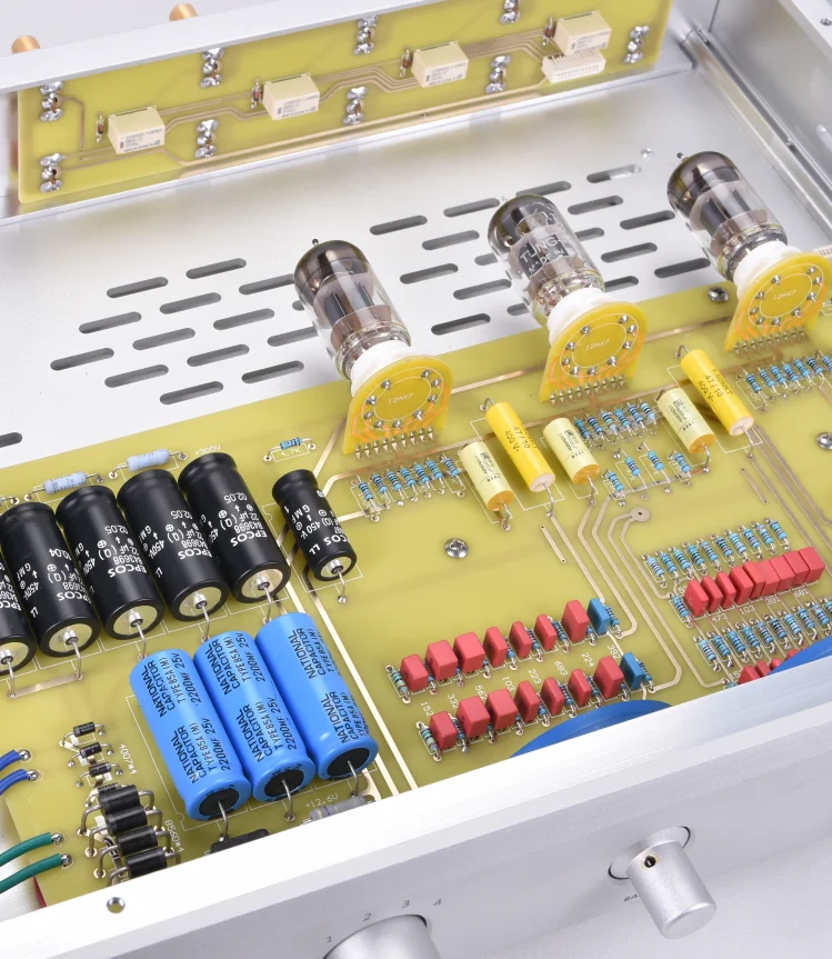 Материал этой машины также очень хорош. Используется A- Core трансформатор без останова, специально настраиваемый многопозиционный тональный переключатель, потенциометр громкости Alps27-Type, Входная Клемма имеет позолоченный порт, полная лихорадка