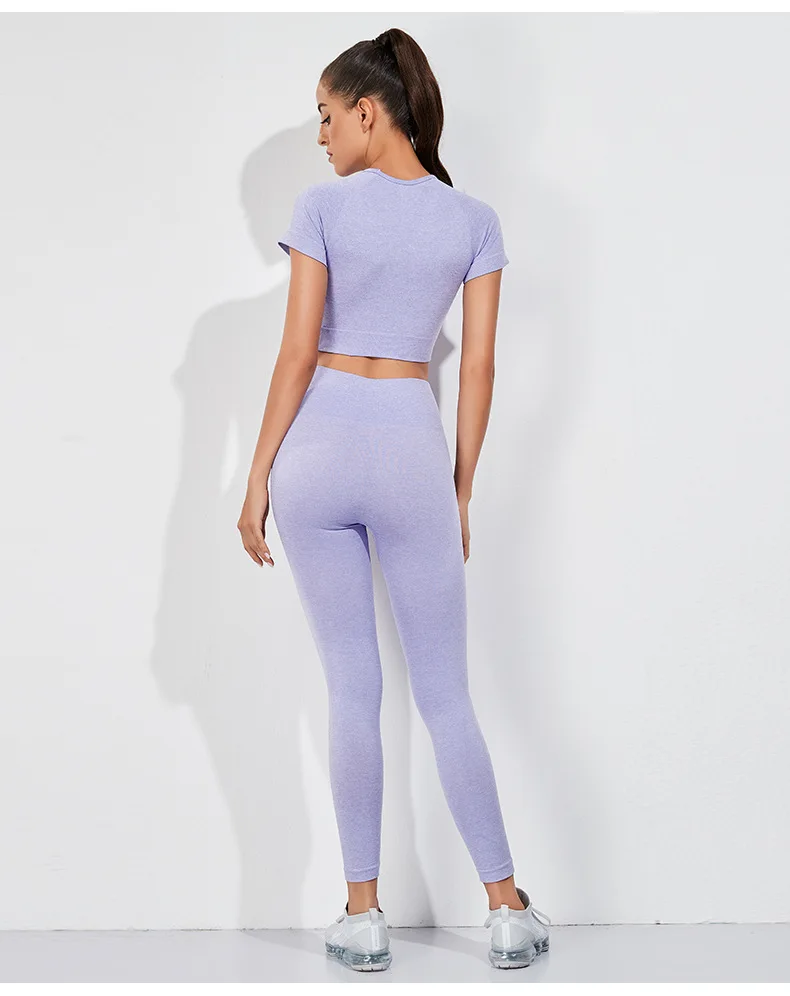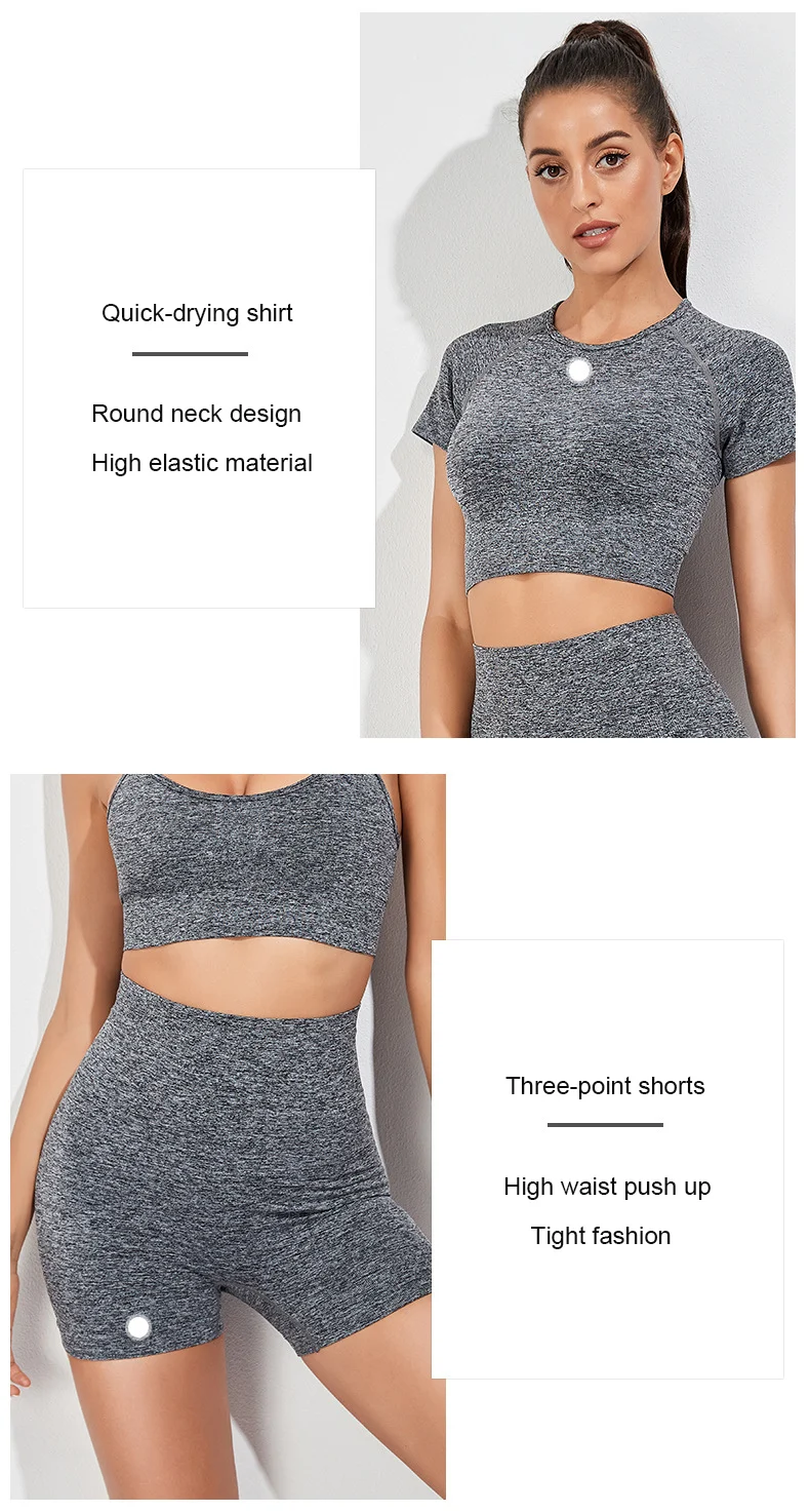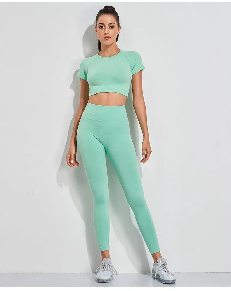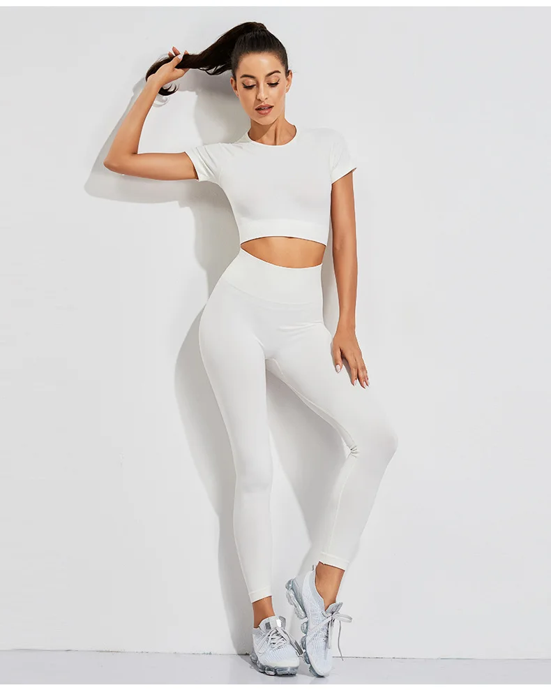 Бесшовный комплект для йоги, короткий топ, рубашка с коротким рукав...