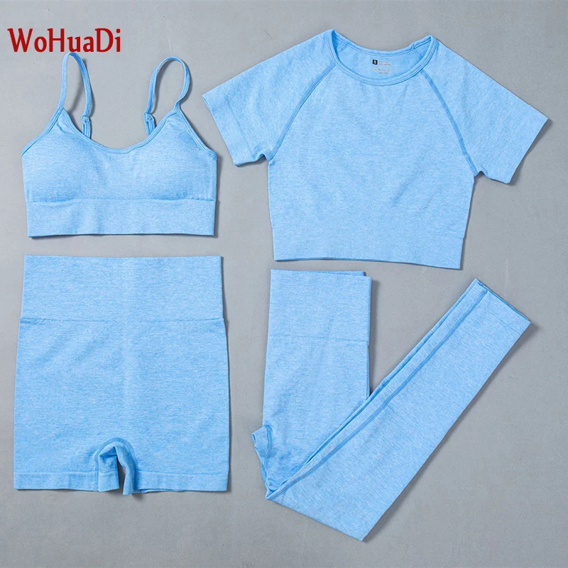 Женский комплект для йоги WOHUADI, бесшовный спортивный бюстгальтер, леггинсы с высокой талией, спортивные костюмы, тренажерный зал, 2021