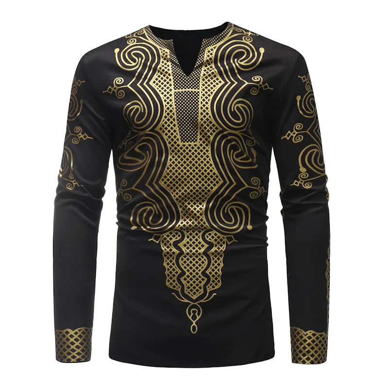 Африканская одежда Dashiki для мужчин, хипстерская Приталенная футболка с длинным рукавом и V-образным вырезом, Мужская Уличная одежда в стиле хип-хоп, повседневная мужская африканская одежда