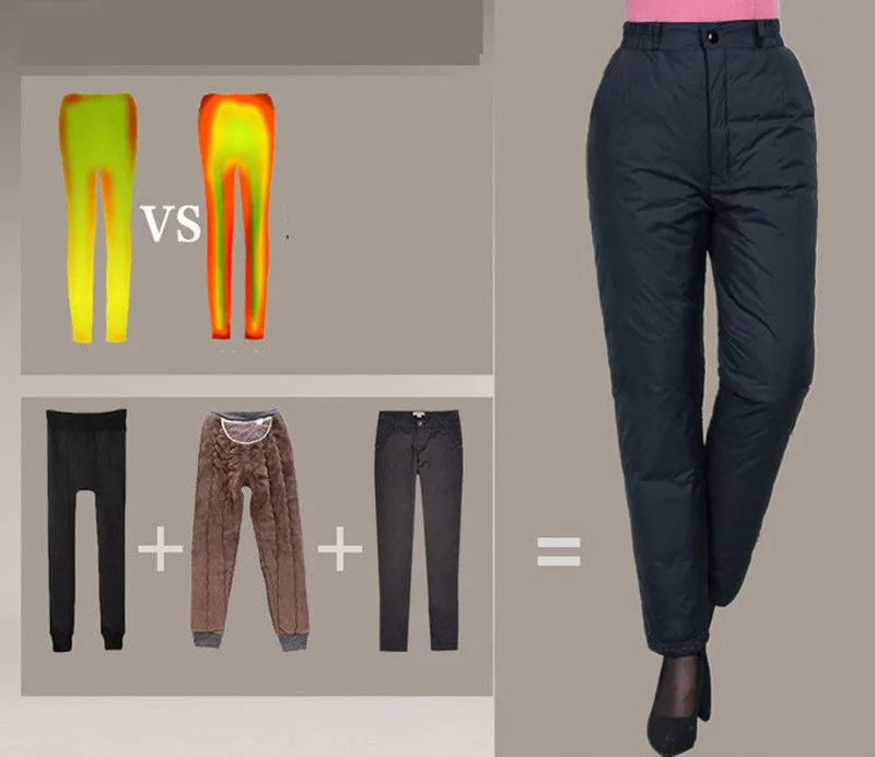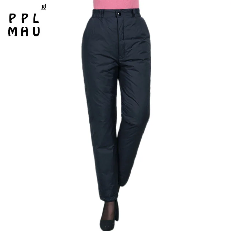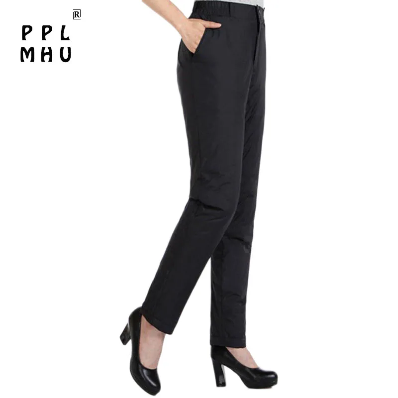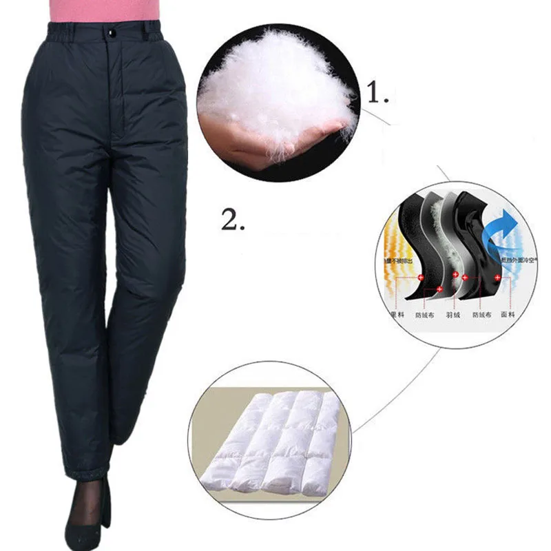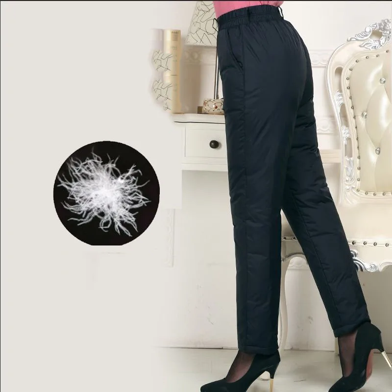 Брюки женские утепленные на утином пуху, эластичные, с высокой талией