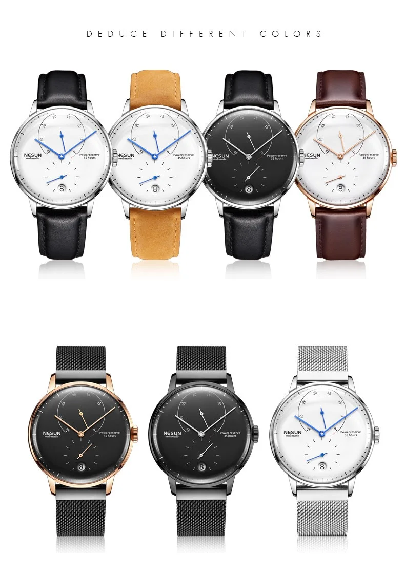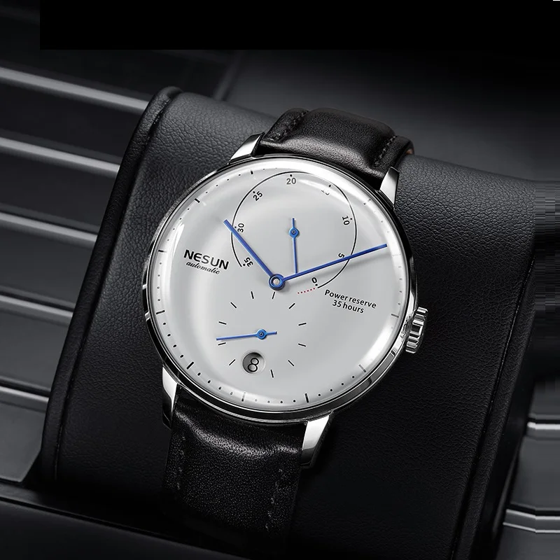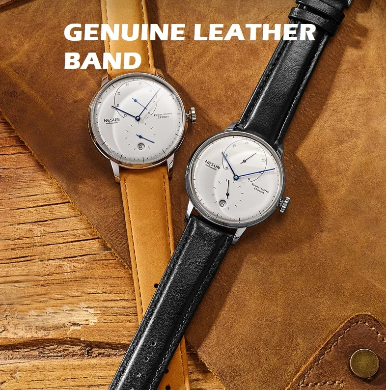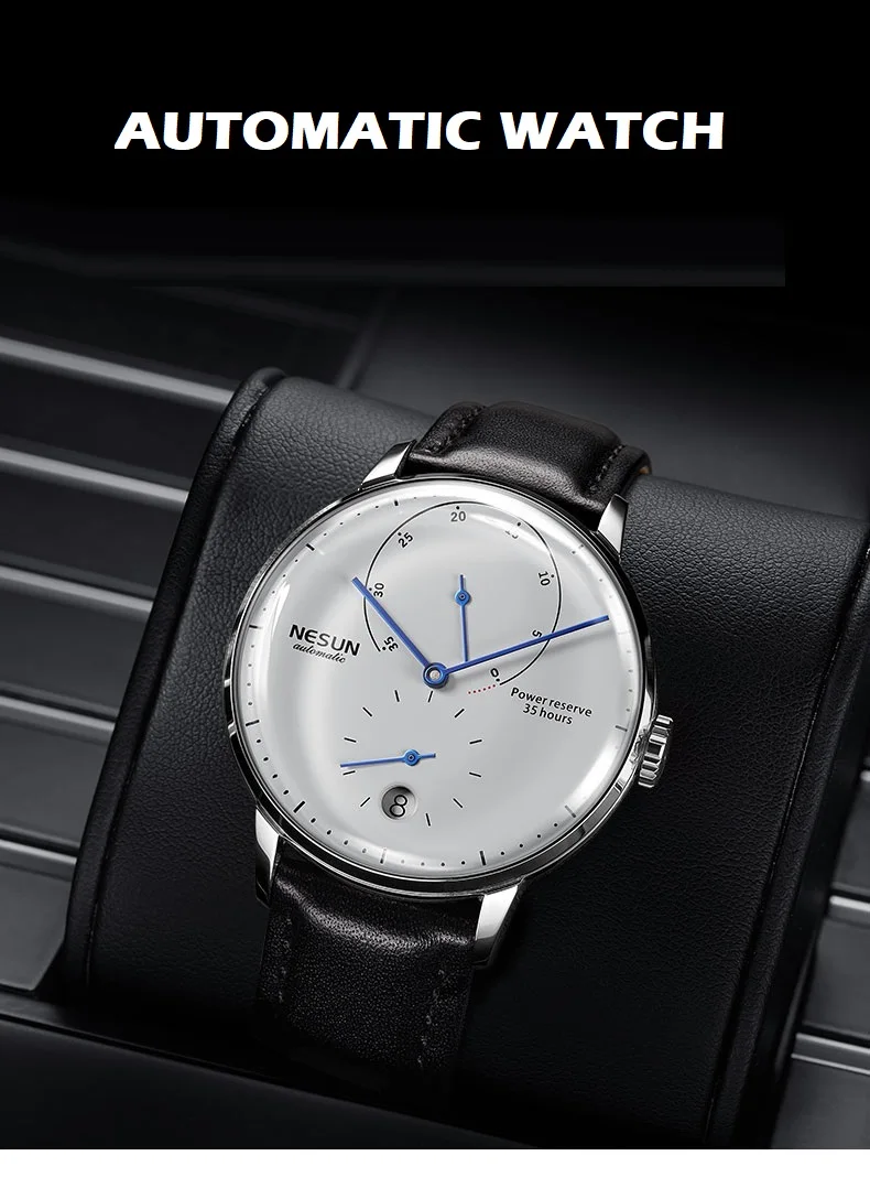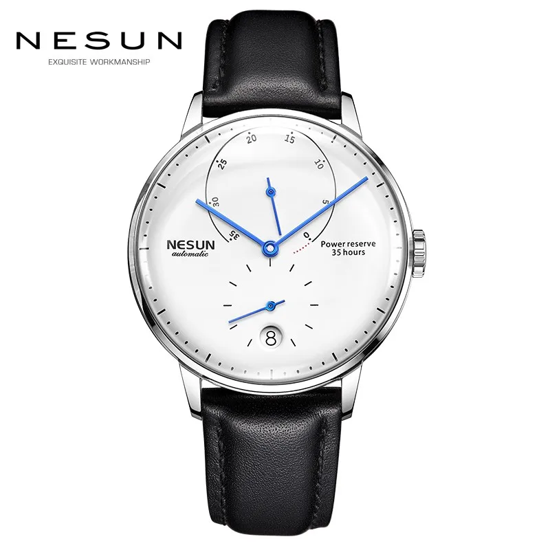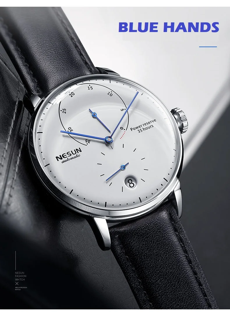 Часы наручные Nesun Мужские автоматические, водонепроницаемые, с кожаным ремешком, 9603