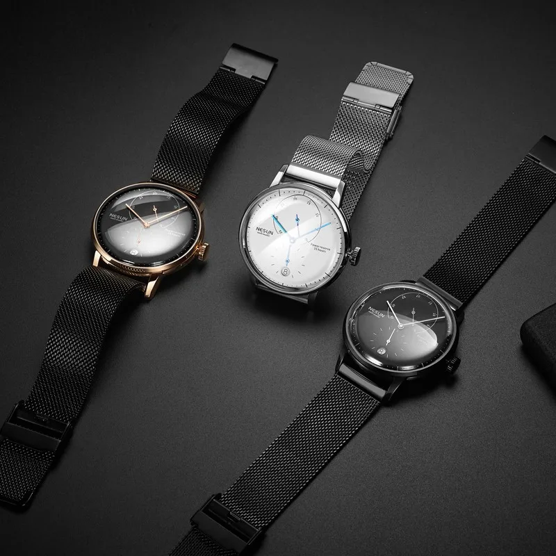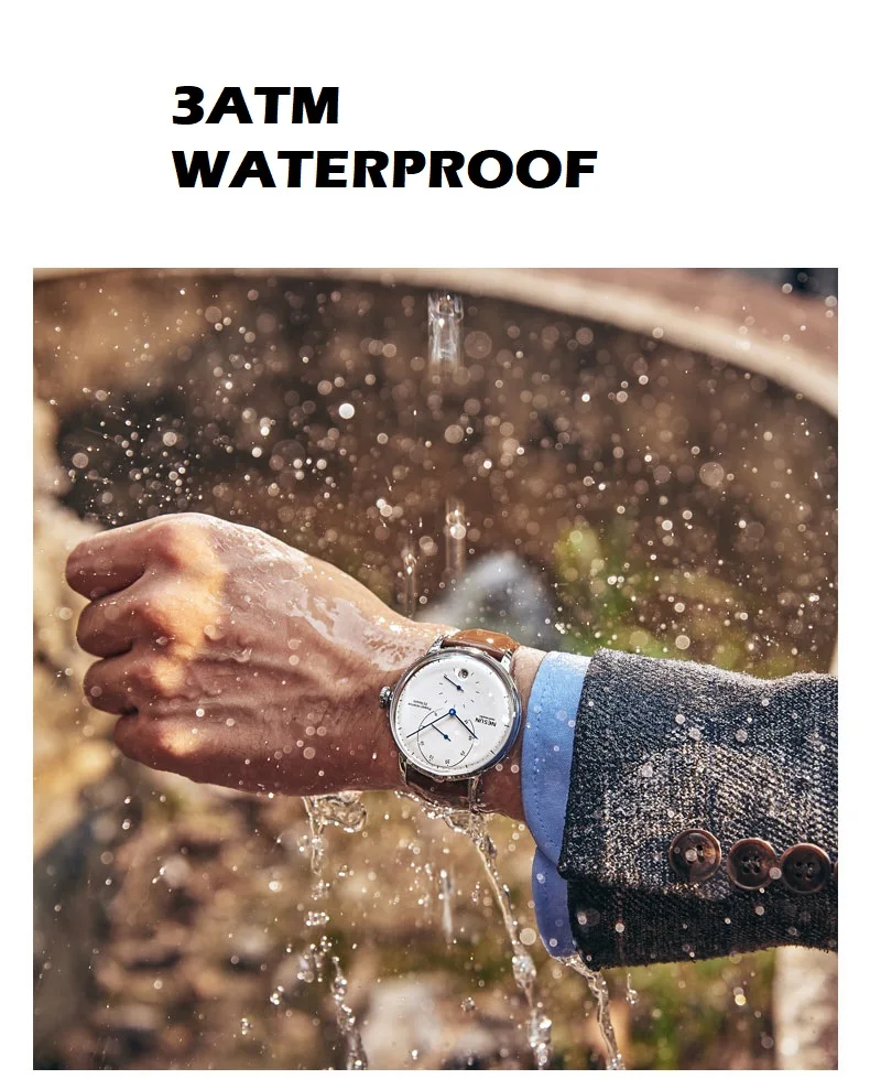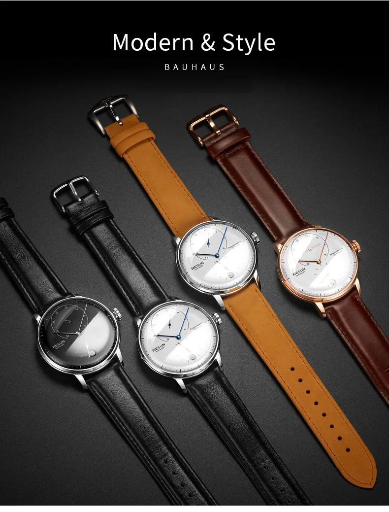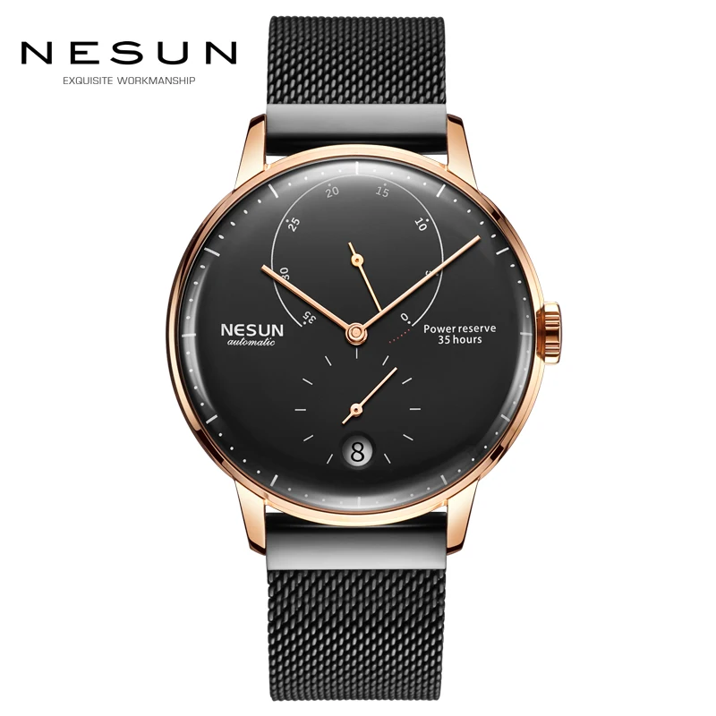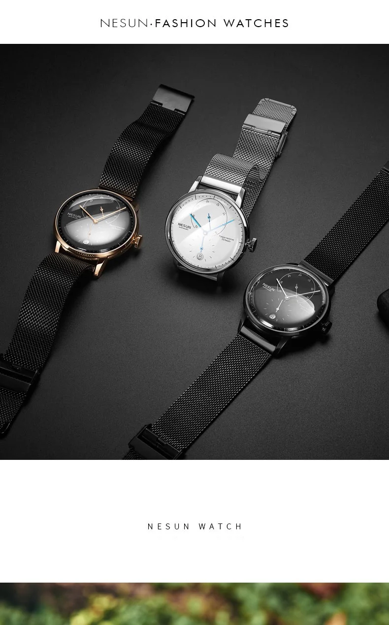 Часы наручные Nesun Мужские автоматические, водонепроницаемые, с кожаным ремешком, 9603