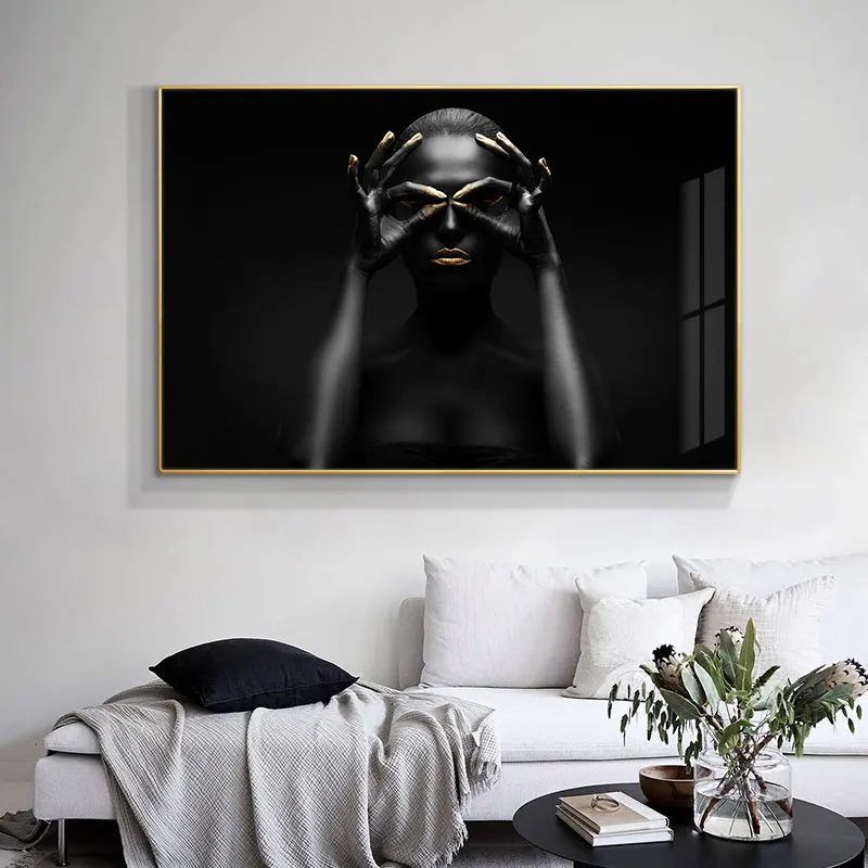 Африканская художественная черно-Золотая Женская картина маслом на холсте куадросские плакаты и принты скандинавские настенные художественные картины для гостиной