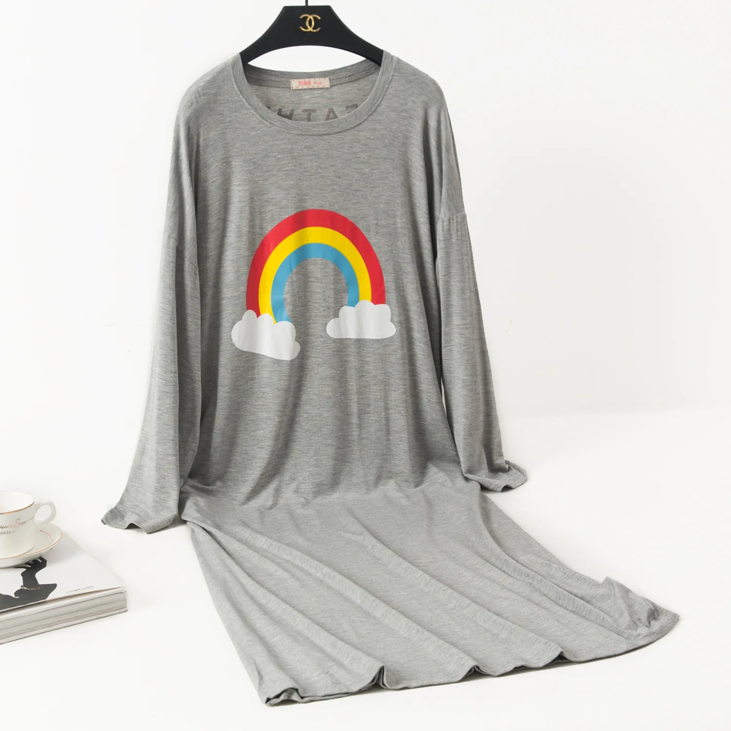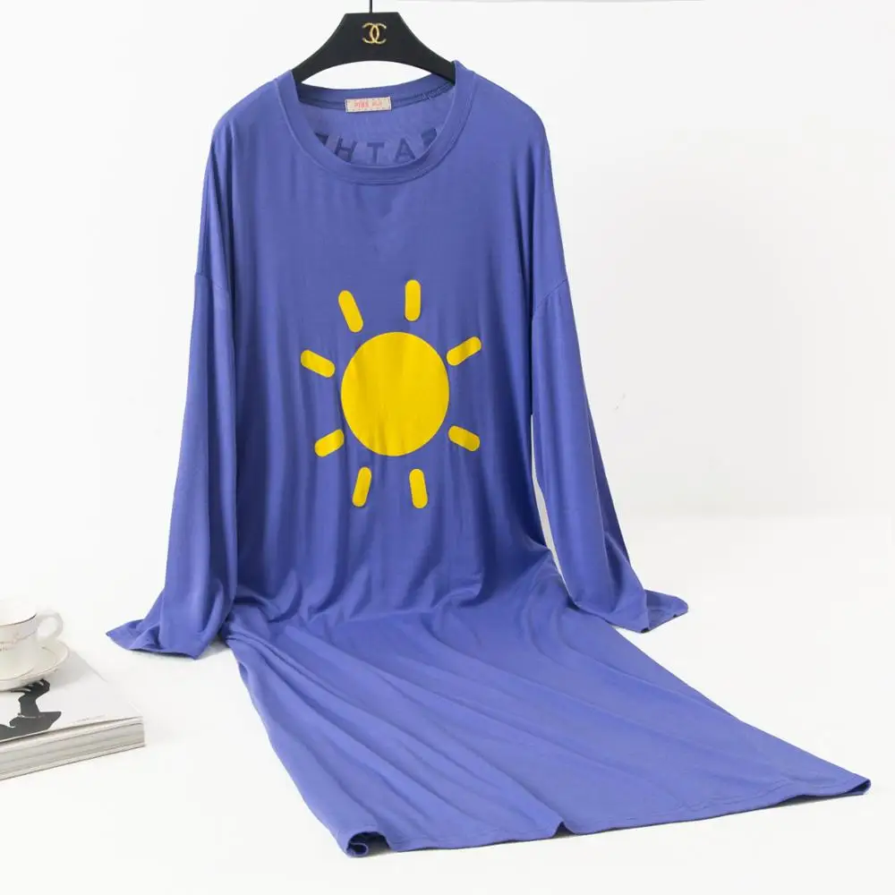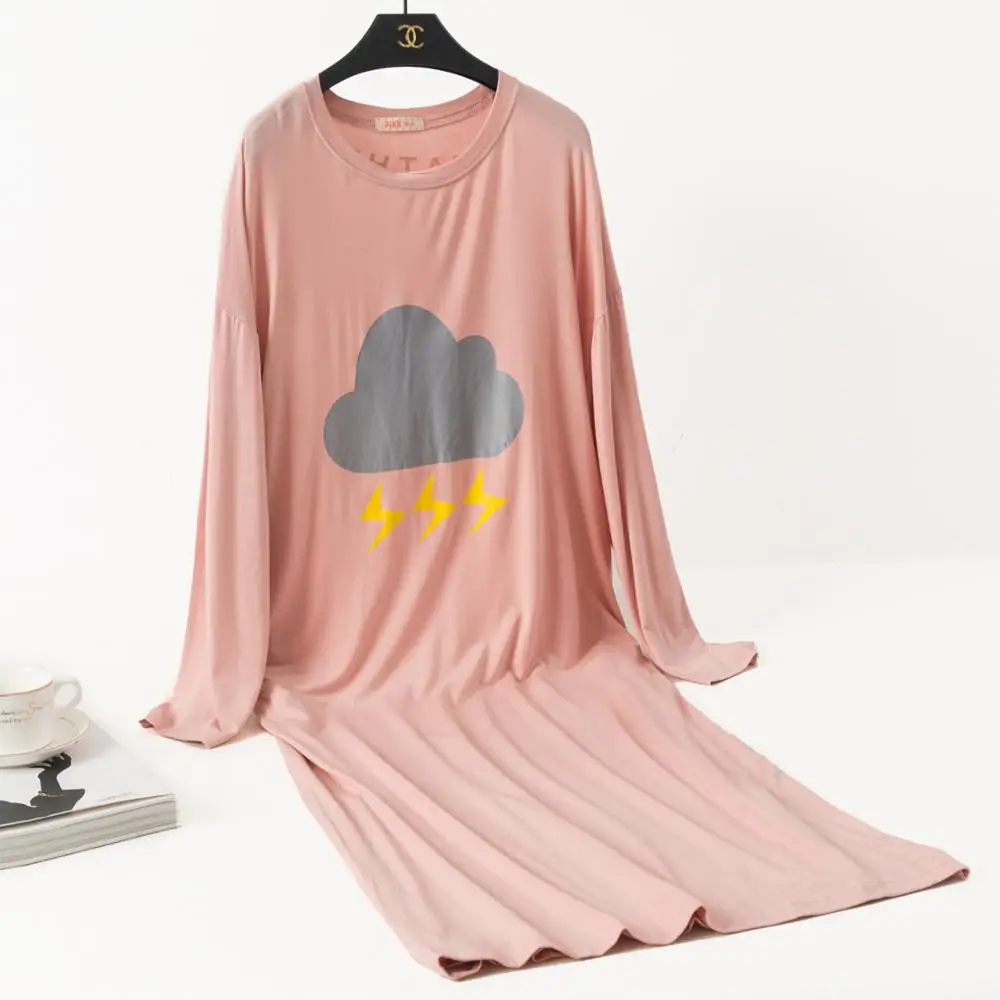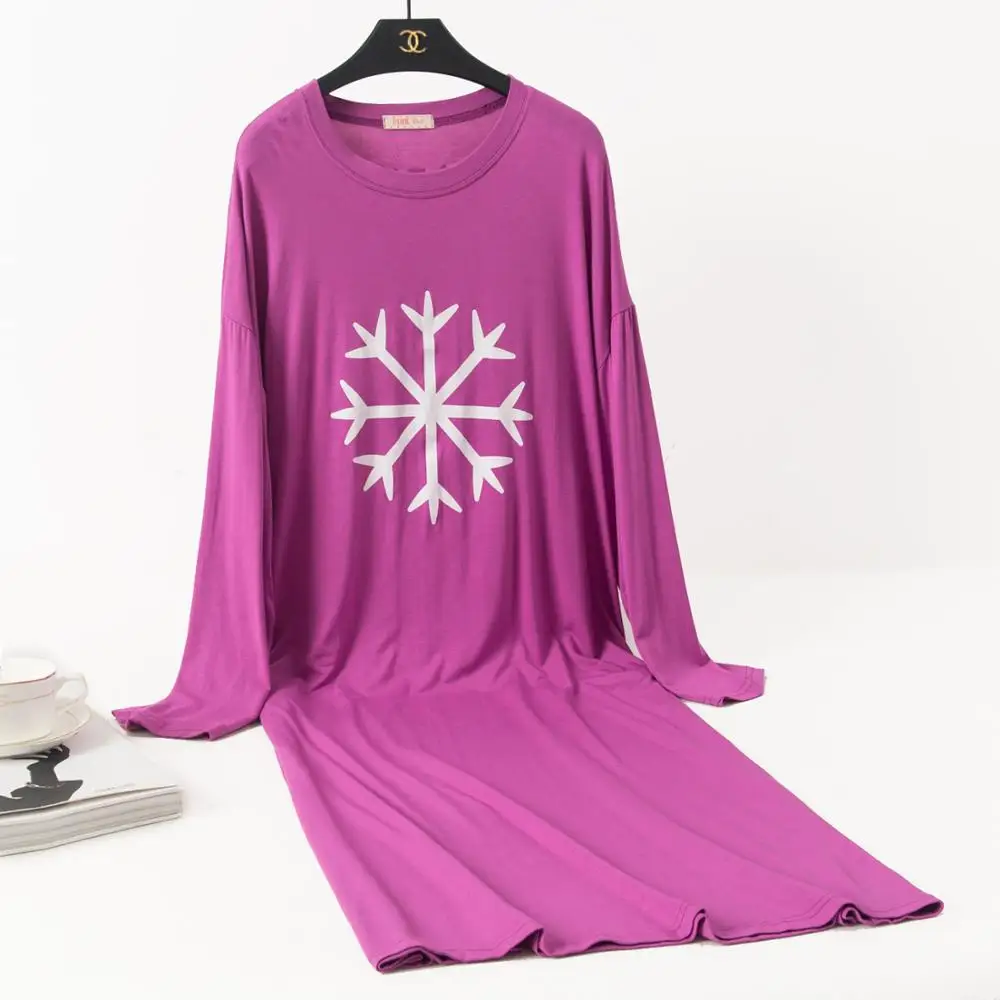 Женская ночная рубашка большого размера, ночная рубашка, осенняя одежда для сна из модала, Свободная Женская длинная ночная рубашка, повседневная домашняя одежда