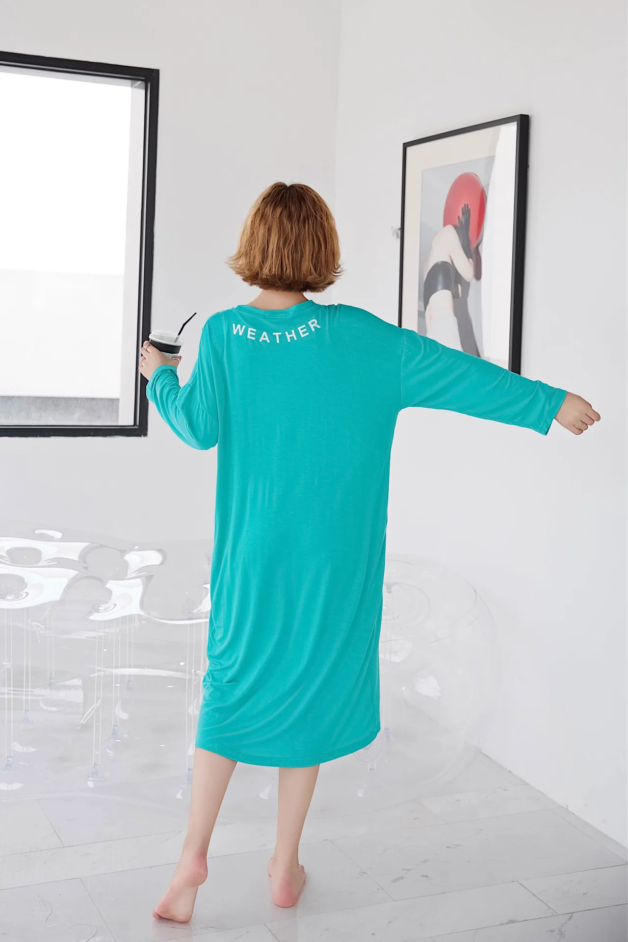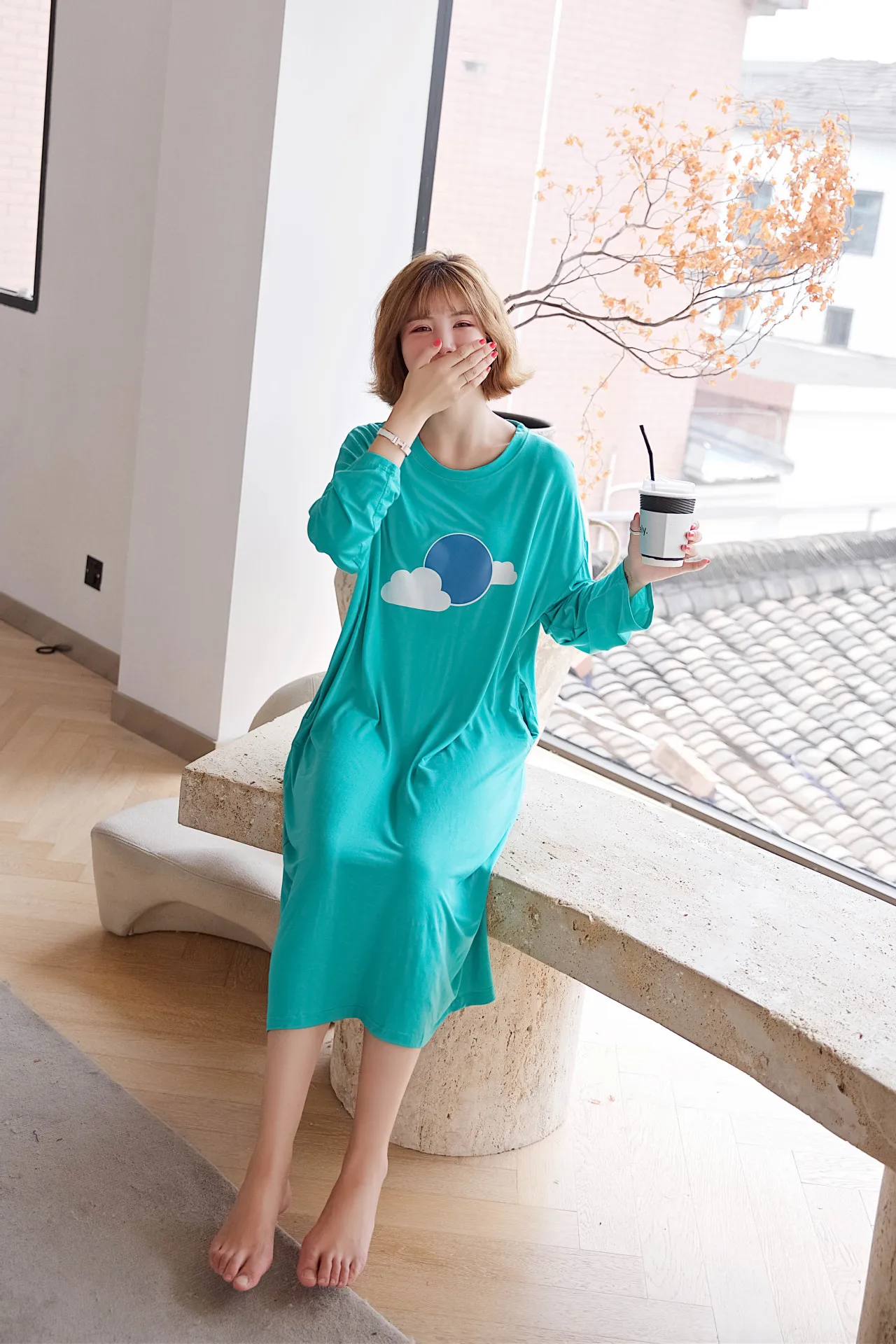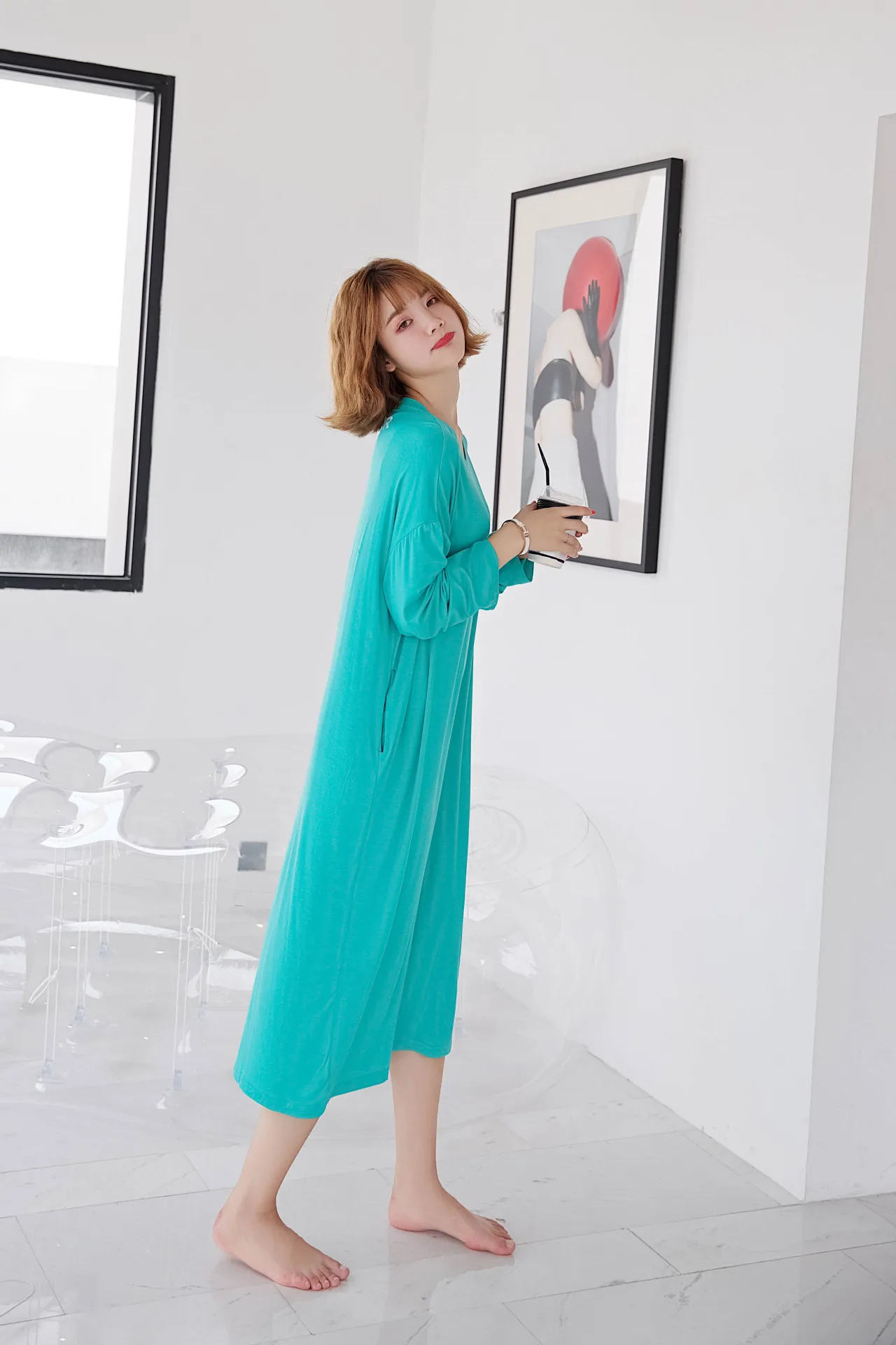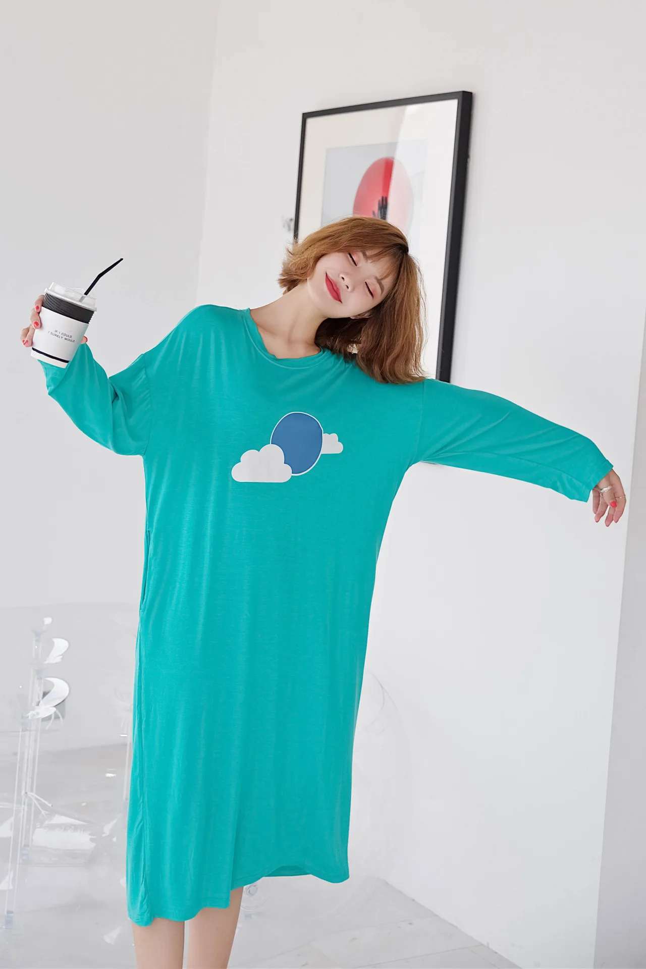 Женская ночная рубашка большого размера, ночная рубашка, осенняя одежда для сна из модала, Свободная Женская длинная ночная рубашка, повседневная домашняя одежда