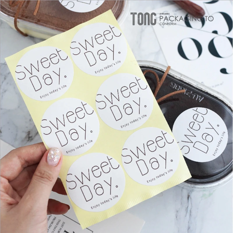 60 шт.круглый милый день, наклейки ручной работы из крафтовой бумаги, милые наклейки для упаковки тортов, этикетки, наклейки, канцелярские принадлежности, сделай сам
