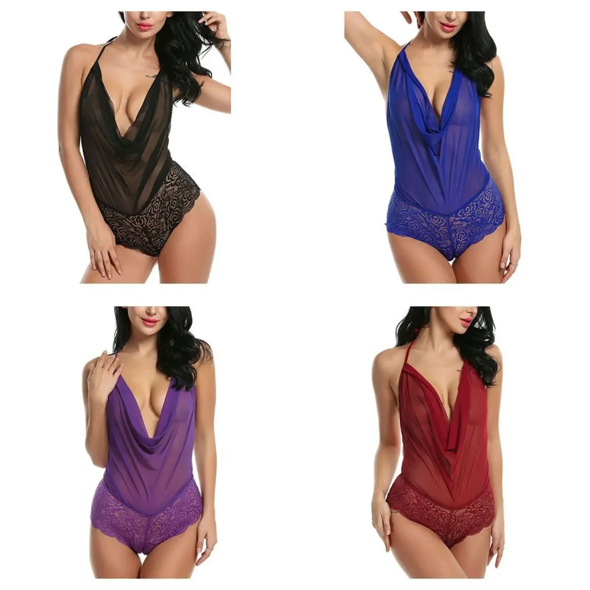 Сексуальное однотонное шелковое облегающее тонкое боди с V-образным вырезом и открытой спиной, прозрачное боди с лямкой на шее, повседневное Прозрачное нижнее белье, модель 2020