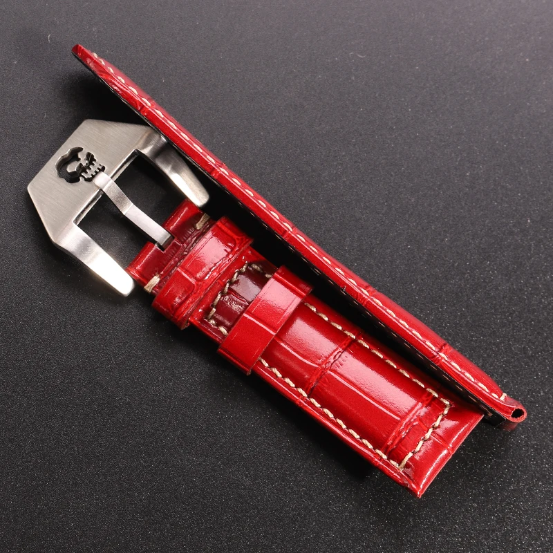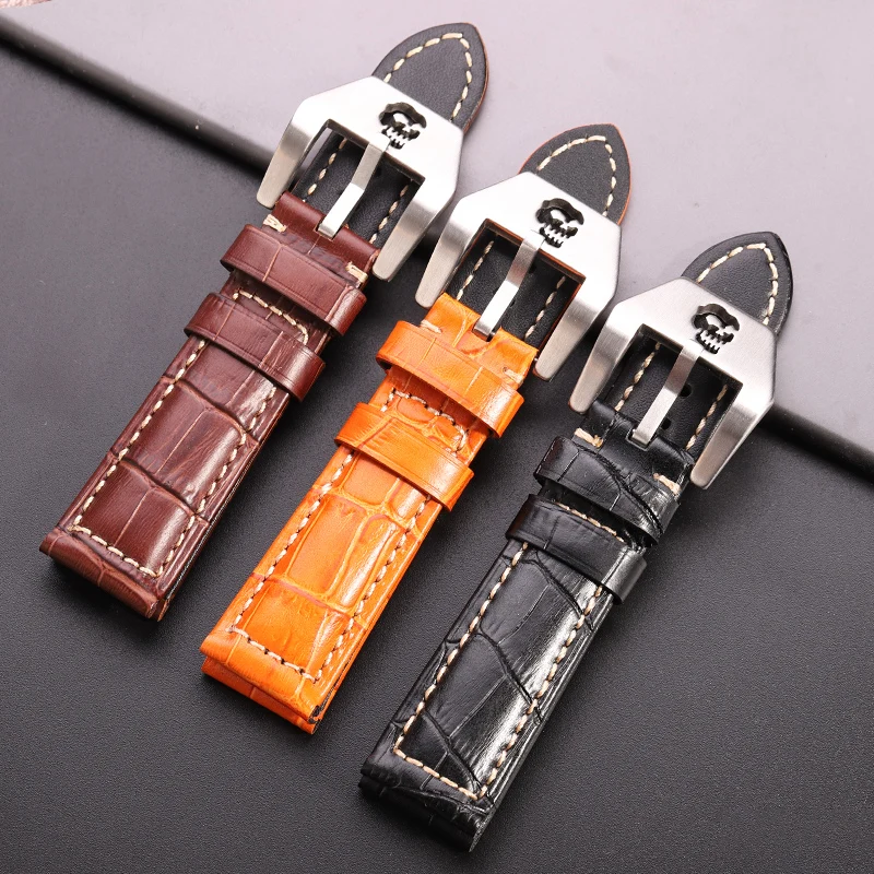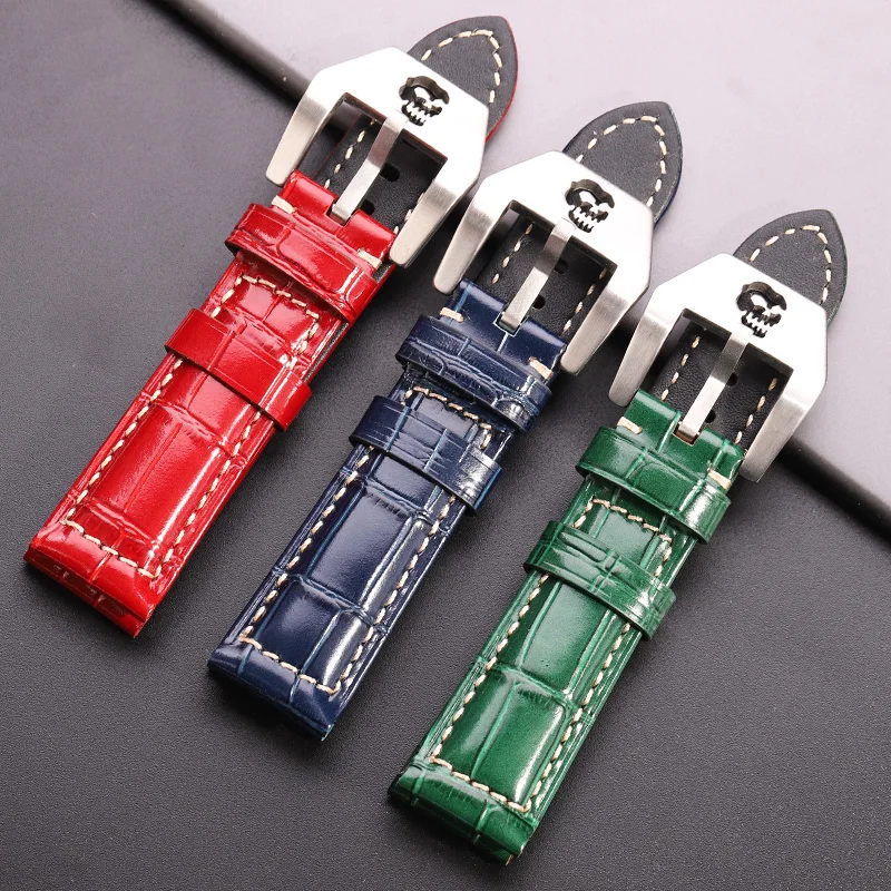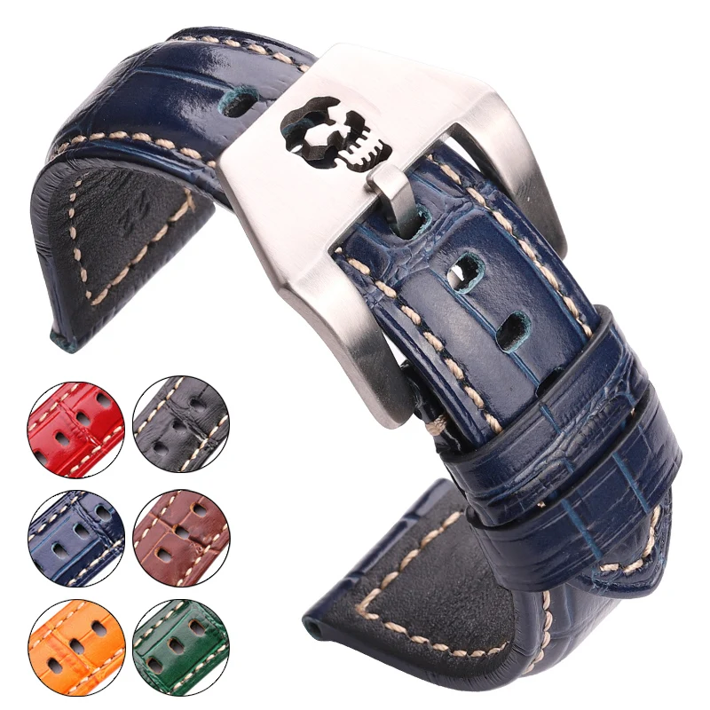 Ремешок из воловьей кожи для мужских и женских наручных часов, полый браслет с пряжкой в виде черепа, красный синий зеленый черный оранжевый, 20 мм 22 мм 24 мм