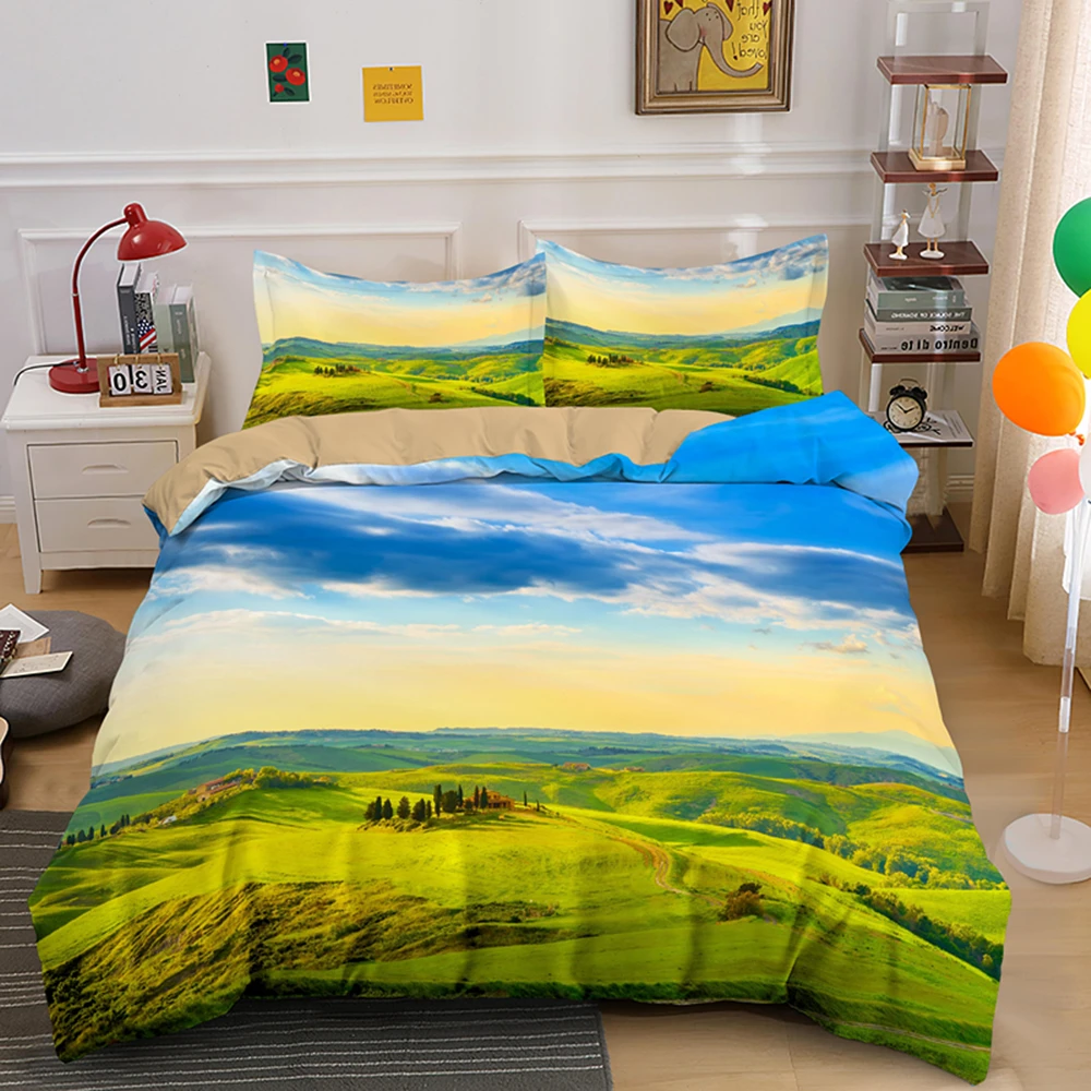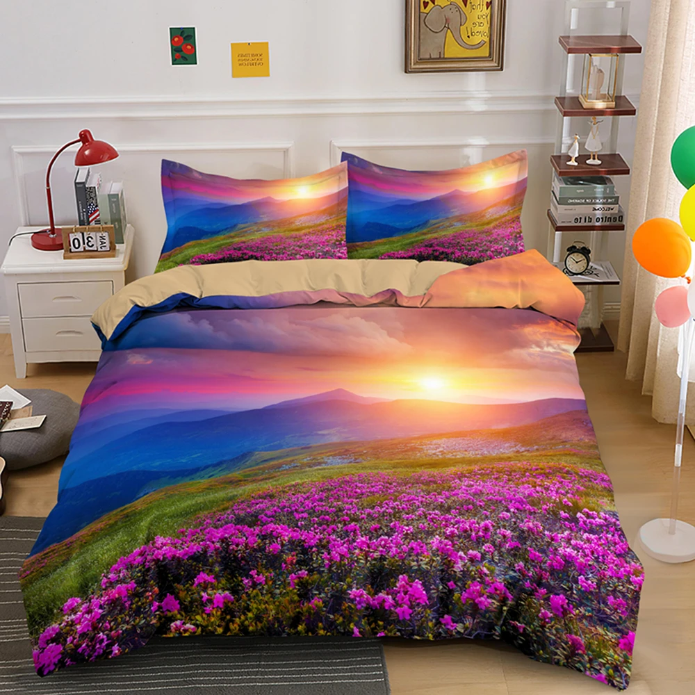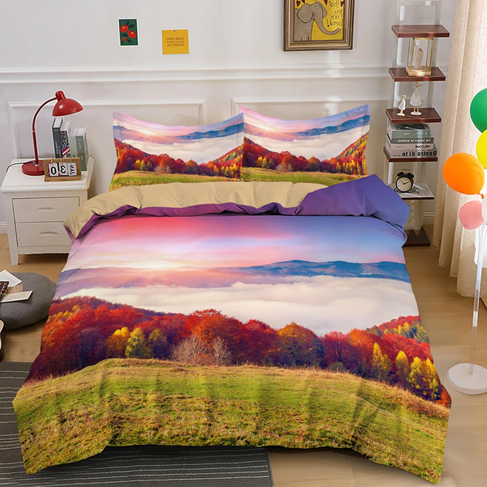 Комплект постельного белья из 23 предметов, с рисунком красивого пейзажа, с пододеяльником и наволочкой, мягкий, Одноместный, двуспальный, Королевский размер, 3D