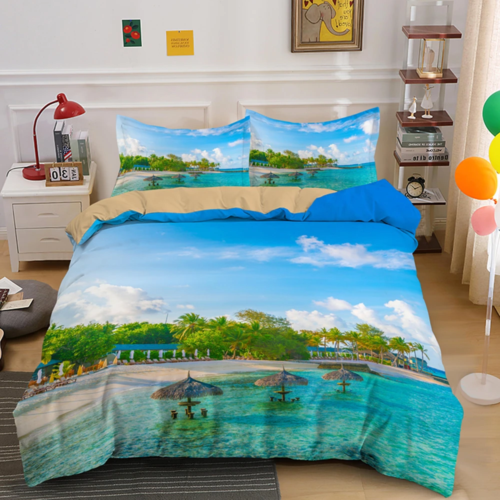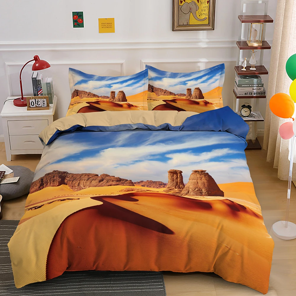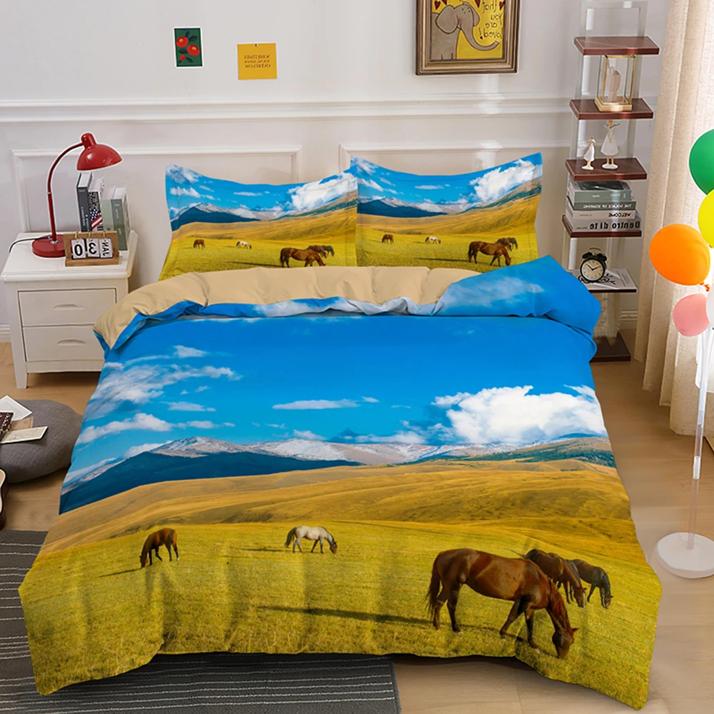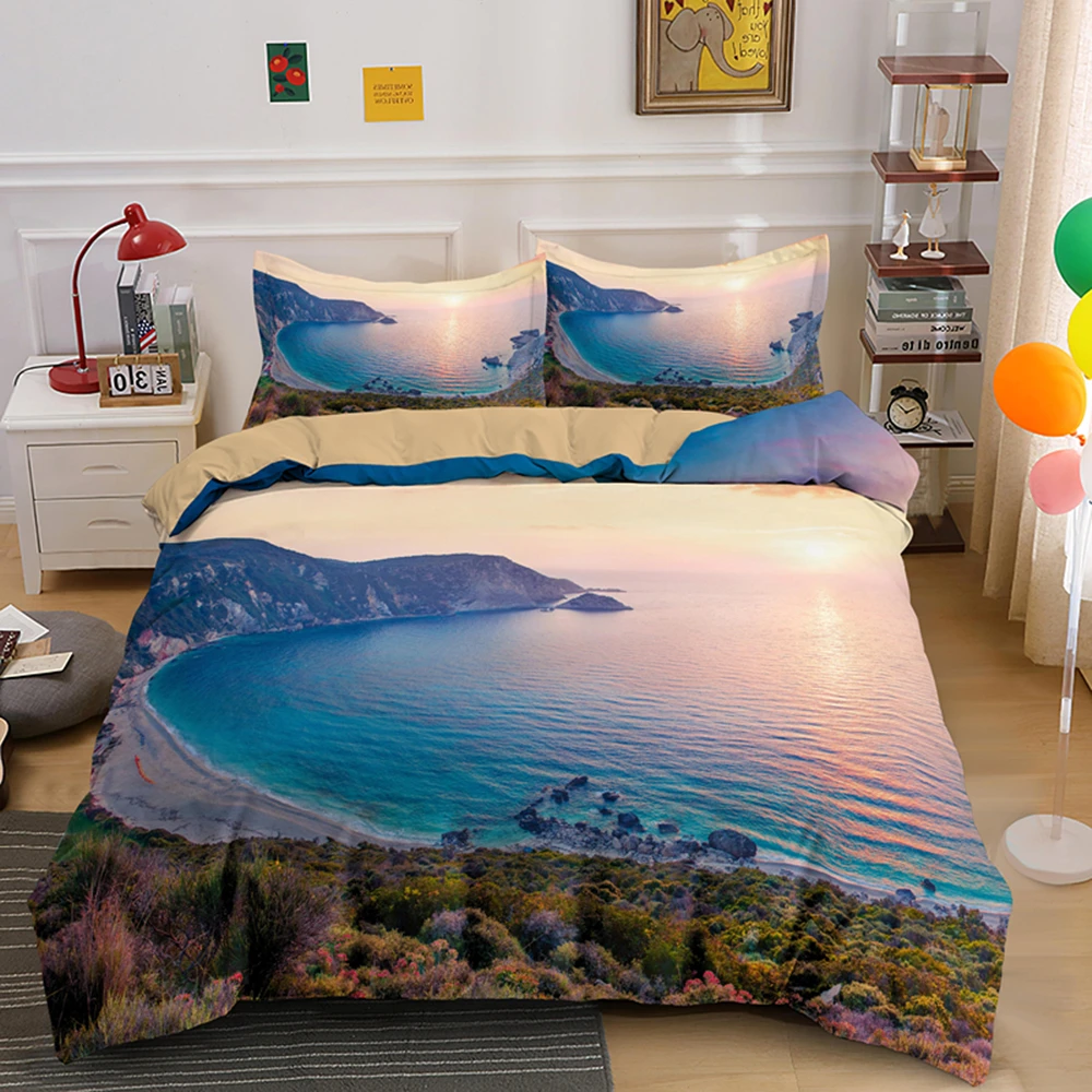 Комплект постельного белья из 23 предметов, с рисунком красивого пейзажа, с пододеяльником и наволочкой, мягкий, Одноместный, двуспальный, Королевский размер, 3D