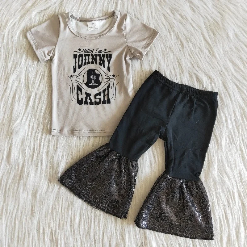 Оптовая продажа, модная черная музыкальная рубашка с кисточками и колокольчиками для маленьких девочек, детские комплекты, бутиковая детская одежда