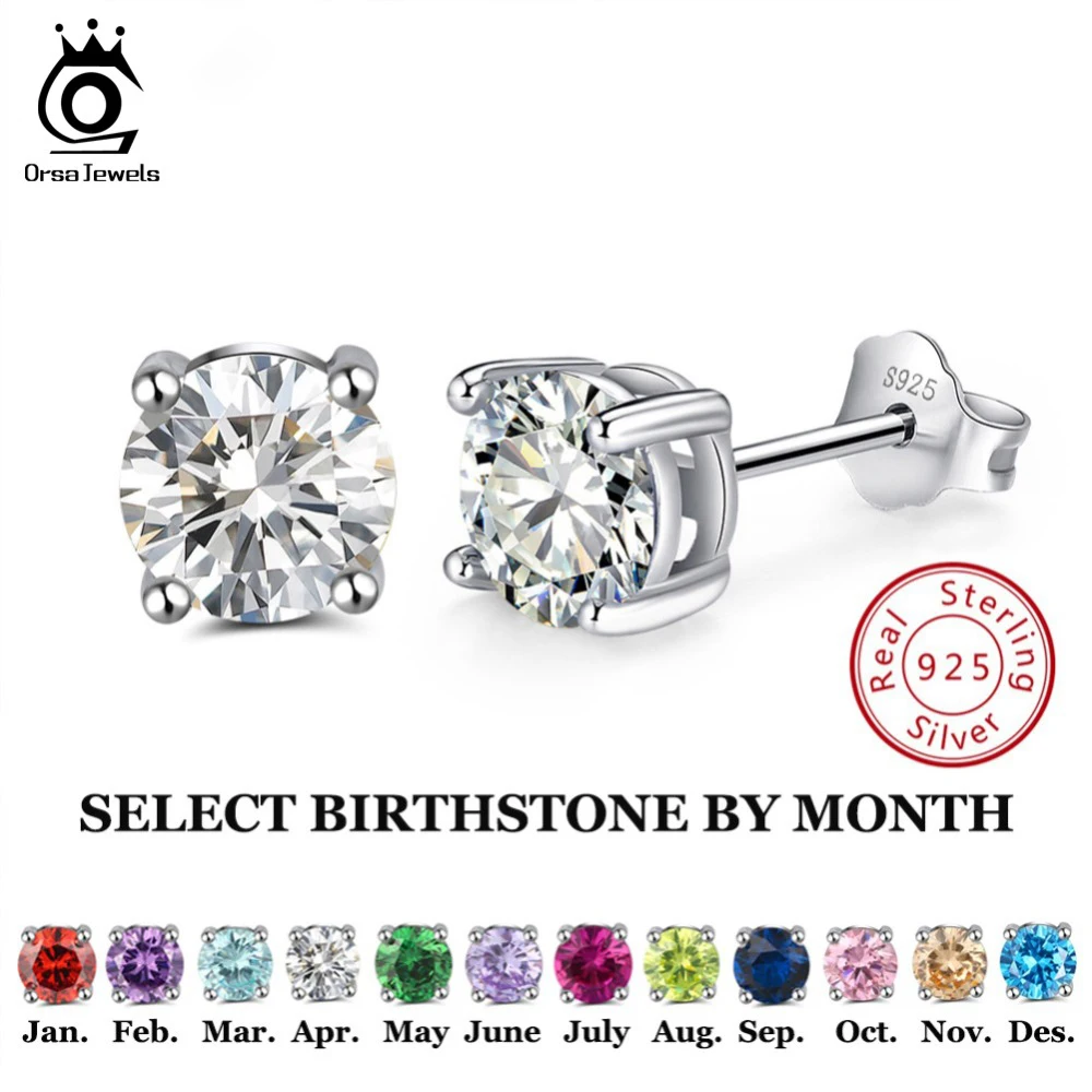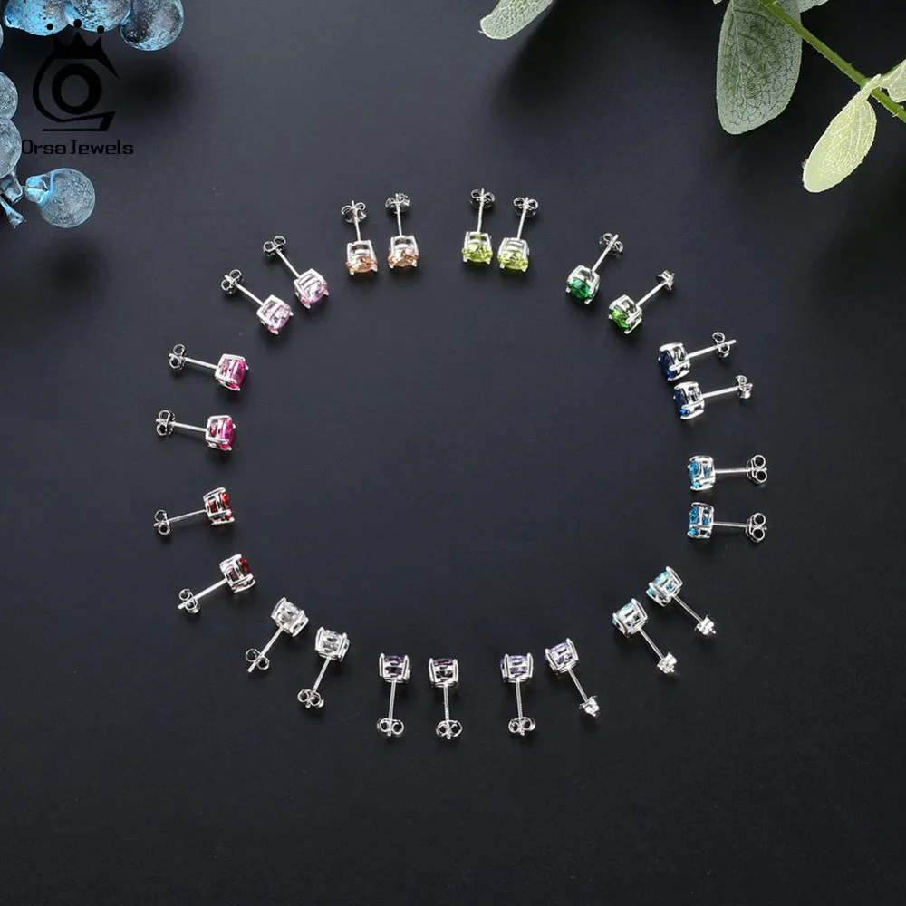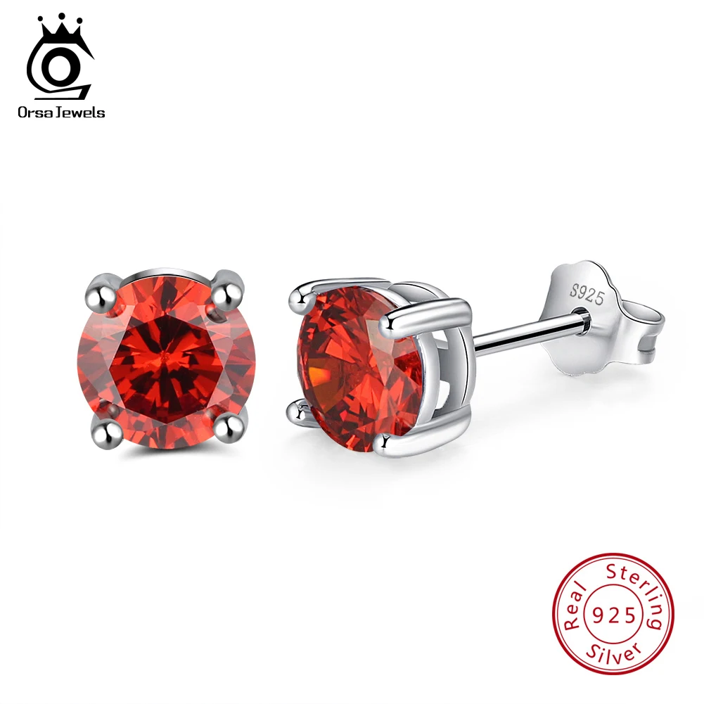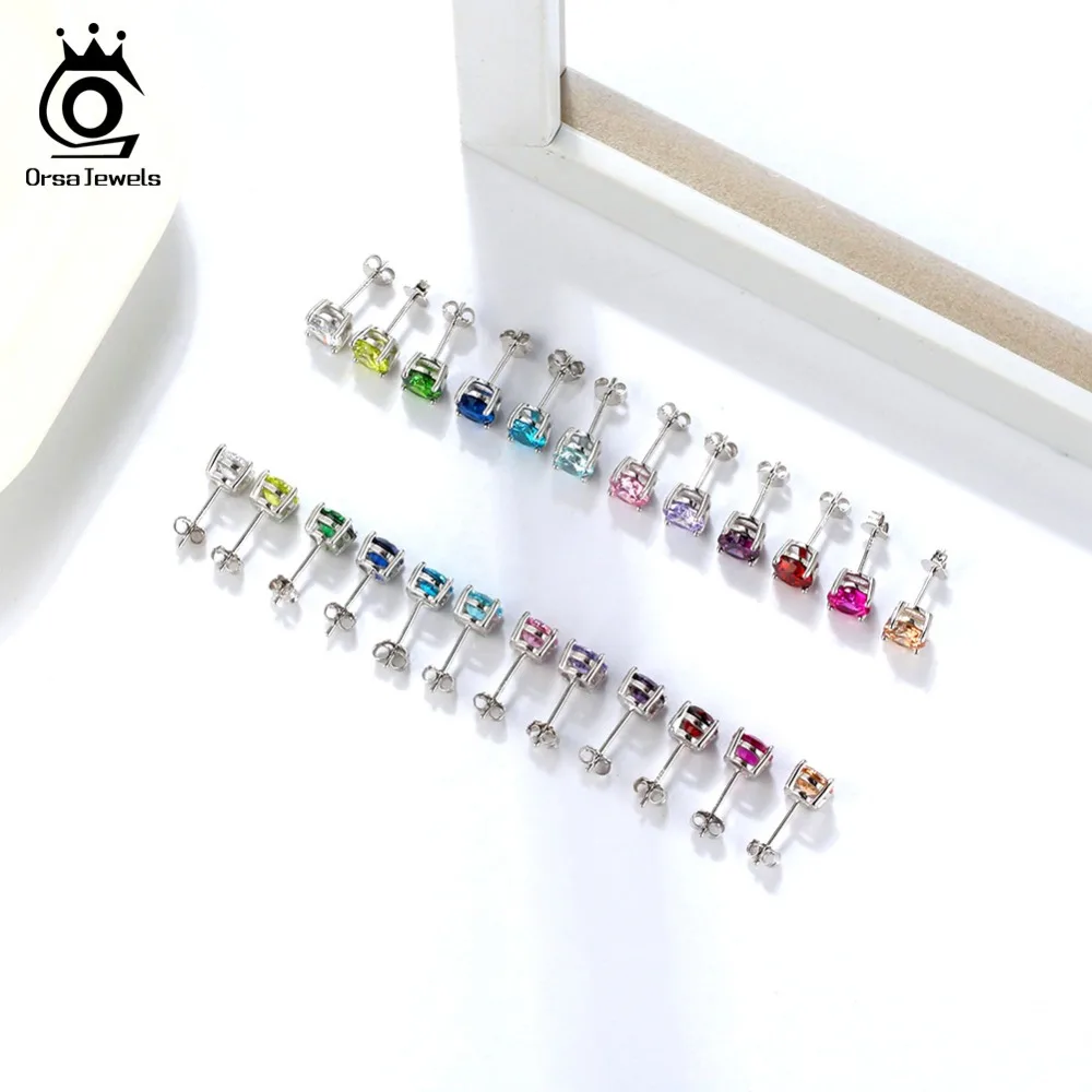ORSA JEWELS, женские серьги-гвоздики из стерлингового серебра 925 пробы, 12 цветов, счастливый камень на месяц, AAA кубический циркон, серьги, ювелирные изделия для девочек, SE84