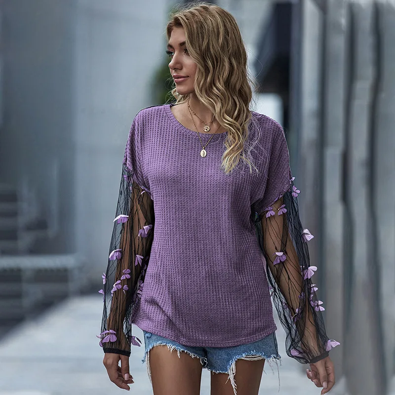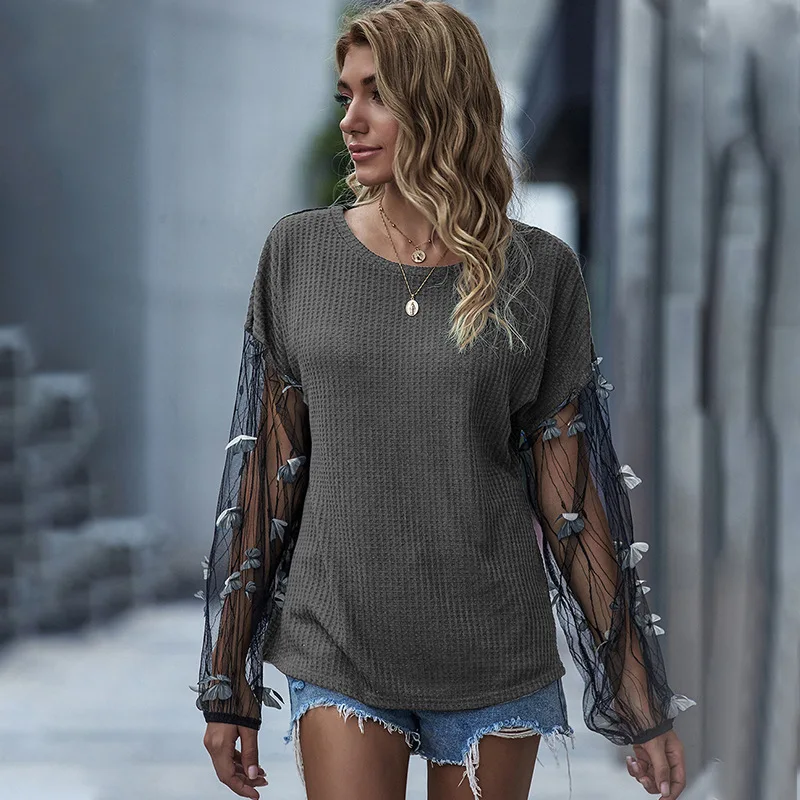 черный лонгслив женские футболки Осень 2020 лук фонарь рукав шифоновые футболки женские винтаж топы повседневные корейская одежда футболка женская