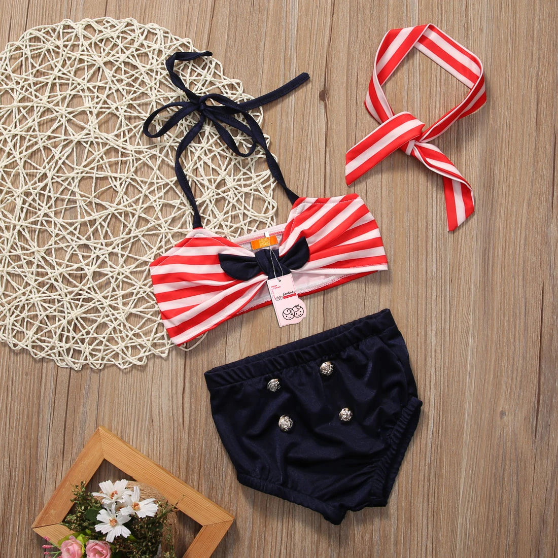 Детский купальник-бикини для девочек, комплект из 3 предметов, летняя одежда, Модный Купальник в полоску, купальный костюм, пляжная одежда, 2020