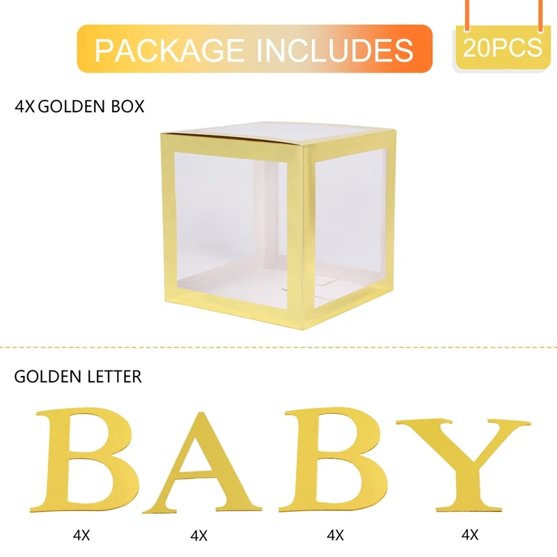 Украшение для вечеринки в честь Дня рождения ребенка, Золотая прозрачная коробка, воздушные шары на 1-й день рождения, украшение для вечеринки в честь Дня Рождения, воздушный шар в коробке