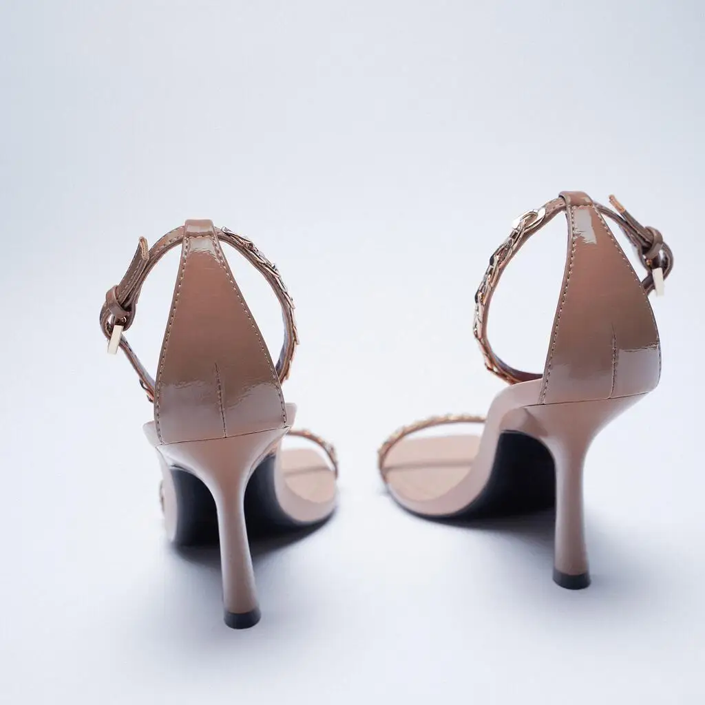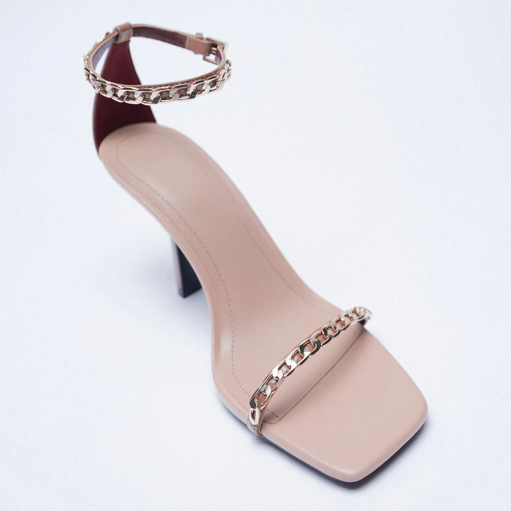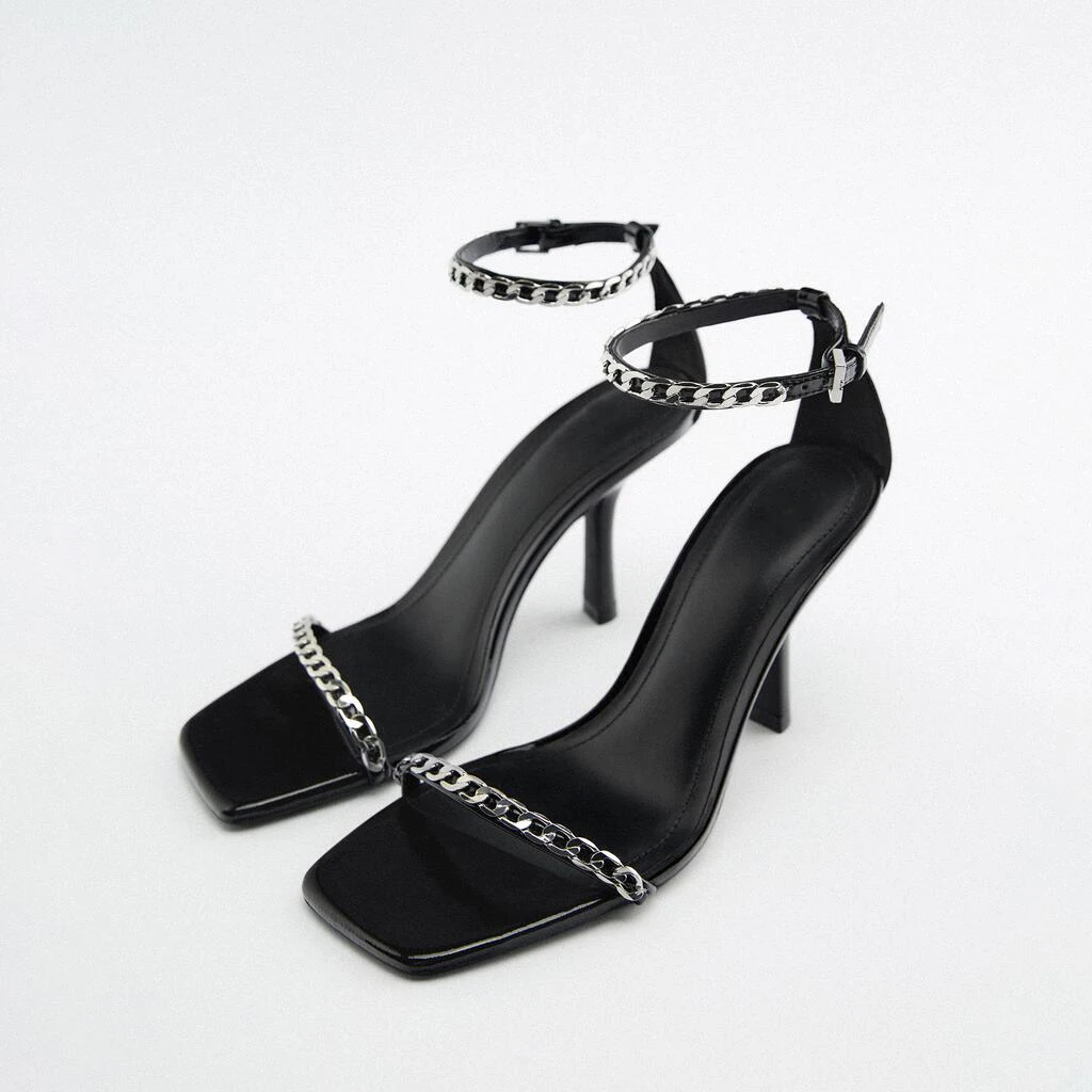 Женские босоножки LMCAVASUN на высоком каблуке, с цепочкой и пряжкой, сказочные летние сандалии с квадратным носком, сандалии с цепочкой и ремешком на щиколотке, новинка 2021