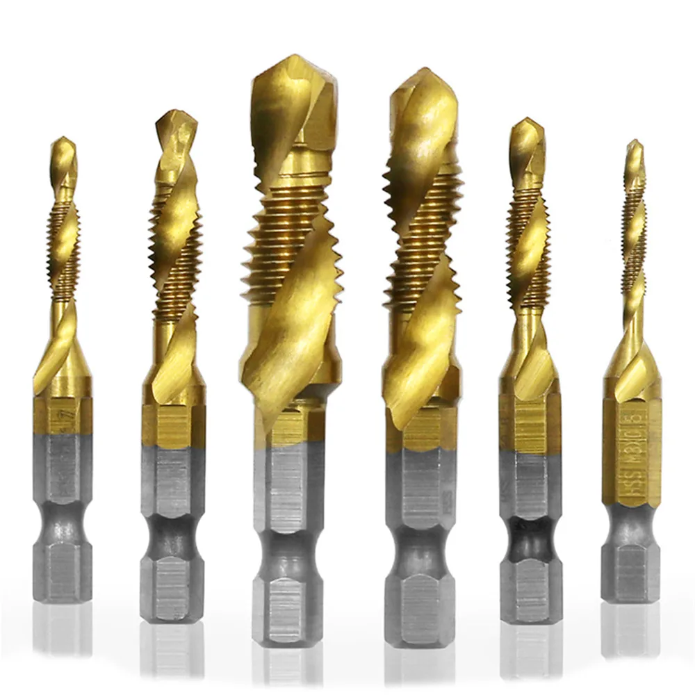 6 шт. M3-M10 шестигранный хвостовик с титановым покрытием винт из быстрорежущей стали метрическое сверло под Метчик